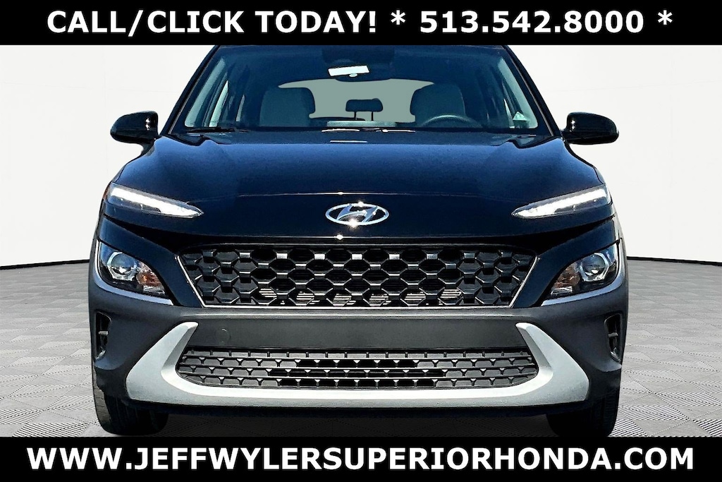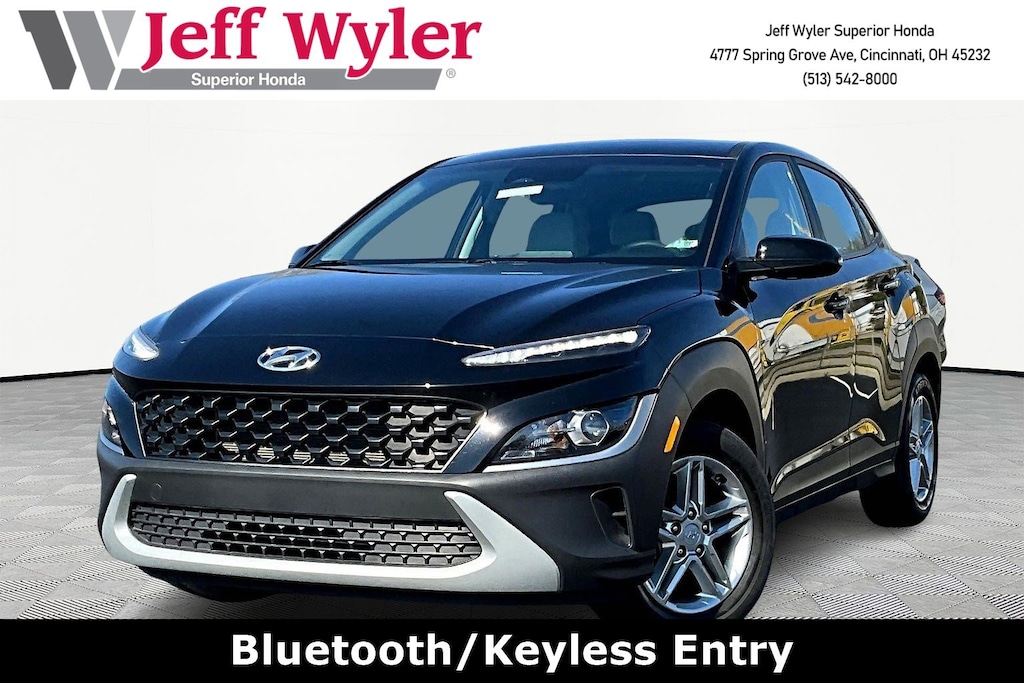 Jeff Wyler Superior Honda is pleased to offer this charming 2023 Hyundai Kona SE in Abyss Black Pearl. Option Group 01, Kona SE, 4D Sport Utility, 2.0L I4 DOHC Dual CVVT, CVT, FWD, Abyss Black Pearl, Gray Cloth, 16" x 6.5J Alloy Wheels, 4-Wheel Disc Brakes, 5.715 Axle Ratio, 6 Speakers, ABS brakes, Air Conditioning, Alloy wheels, AM/FM radio, Apple CarPlay & Android Auto, Brake assist, Bumpers: body-color, Cargo Net, Cargo Tray, Carpeted Floor Mats, Cloth Seat Trim, Delay-off headlights, Driver door bin, Driver vanity mirror, Dual front impact airbags, Dual front side impact airbags, Electronic Stability Control, Exterior Parking Cameras, Front anti-roll bar, Front Bucket Seats, Front Center Armrest, Front reading lights, Front wheel independent suspension, Fully automatic headlights, Heated door mirrors, Illuminated entry, Low tire pressure warning, Occupant sensing airbag, Outside temperature display, Overhead airbag, Overhead console, Panic alarm, Passenger door bin, Passenger vanity mirror, Power door mirrors, Power steering, Power windows, Radio: AM/FM Audio System, Rear seat center armrest, Rear window defroster, Rear window wiper, Remote keyless entry, Security system, Speed control, Speed-sensing steering, Split folding rear seat, Spoiler, Steering wheel mounted audio controls, Tachometer, Telescoping steering wheel, Tilt steering wheel, Traction control, Trip computer, Turn signal indicator mirrors, and Variably intermittent wipers Our PRE-OWNED vehicles are put through a rigorous 167- POINT QUALITY ASSURANCE INSPECTION along with an average amount of over $1,400.00 SPENT to recondition each vehicle so we can be sure to deliver you the highest quality vehicle like you deserve! ***ONLINE PRICE DOES NOT INCLUDE WYLER FAMILY FIRST PACKAGE*** Stop by 4777 Spring Grove Ave. Road to see for yourself, or give us a call @ 283-209-1858 to schedule your test drive!Vehicle pricing includes all offers and incentives. Due to limited inventory, offers and pricing are all subject to change. Tax, Title, Tags and $387 doc fees are not included in vehicle price shown and must be paid by the purchaser. Doc fees vary by location. Financing w/approved credit. Mileage est. Based on current EPA estimates reflecting new EPA methods beginning w/ 2008 models. For comparison only. Do not compare to pre 2008 models. Actual mileage may vary based on how you drive and maintain your vehicle. Information on this site includes 3rd party data believed to be reliable, subject to change without notice. Jeff Wyler reserves the right to correct any errors and/or omissions in the compilation or presentation of this data and makes no representations express or implied to any prospective purchaser as to the vehicle's condition, specifications, history, equipment or equipment function, price or warranties. This vehicle may be subject to an open recall that has not been repaired. Please consult safercar.gov for more information on the current status. It is the responsibility of purchaser to confirm any data prior to purchase. Other than MSRP, all offers only apply to this vehicle and are subject to change. Vehicle prices are subject to change and all vehicles are subject to prior sale and may not be available when you are ready to purchase. Prices listed on any other website may not be accepted. Dealership advertises the sale of vehicles through a number of different channels and cannot always control when they are updated. Wyler? and Jeff Wyler? are registered trademarks of the Jeff Wyler Automotive Family, Inc.