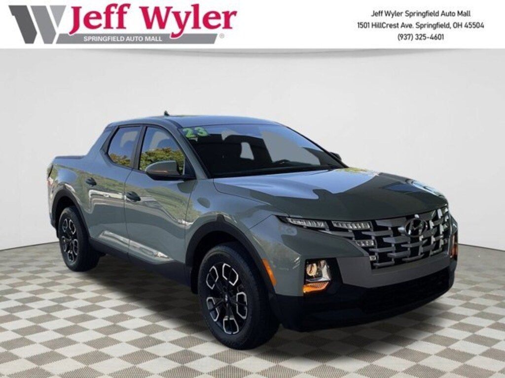 Jeff Wyler Springfield Auto Mall is delighted to offer this beautiful 2023 Hyundai Santa Cruz SEL in Sage Gray. Well equipped with: Option Group 01, 18 x 7.5J Alloy Wheels, 4-Wheel Disc Brakes, 4.081 Axle Ratio, 6 Speakers, ABS brakes, Air Conditioning, Alloy wheels, AM/FM radio: SiriusXM, Apple CarPlay & Android Auto, Auto High-beam Headlights, Auto-leveling suspension, Brake assist, Bumpers: body-color, Carpeted Floor Mats, Delay-off headlights, Driver door bin, Driver vanity mirror, Dual C-Channel Utility Tracks on Bed Side, Dual front impact airbags, Dual front side impact airbags, Electronic Stability Control, Emergency communication system: Blue Link Connected Car Service (3-year complimentary subscription), Envelop Cargo Net, Exterior Parking Camera Rear, Four wheel independent suspension, Front anti-roll bar, Front Bucket Seats, Front Center Armrest, Front reading lights, Fully automatic headlights, Heated door mirrors, Heated Front Bucket Seats, Heated front seats, Illuminated entry, Low tire pressure warning, Mudguards, Occupant sensing airbag, Outside temperature display, Overhead airbag, Overhead console, Panic alarm, Passenger door bin, Passenger vanity mirror, Power door mirrors, Power driver seat, Power steering, Power windows, Radio data system, Radio: AM/FM/HD Audio System, Rear anti-roll bar, Rear step bumper, Rear window defroster, Remote keyless entry, Security system, Speed control, Speed-sensing steering, Split folding rear seat, Spoiler, Stain & Odor Resistant Cloth Seat Trim, Steering wheel mounted audio controls, Tachometer, Telescoping steering wheel, Tilt steering wheel, Traction control, Trip computer, Turn signal indicator mirrors, and Variably intermittent wipers. Ask about available certifications. Used vehicles 10 years of age or newer with less than 100,000 miles are eligible for the Wyler Assurance Program, but eligible vehicles must pass our reconditioning process and multi-point inspection. Provided the vehicle passes inspection, vehicles will be eligible for the 6 month/6,000 mile limited warranty. The 6 month/6,000 mile limited warranty is NOT available on AS-IS vehicles, wholesale vehicles, lease buyback/pass-thru vehicles or un-inspected vehicles. Note that this program can also apply to vehicles where the remaining factory coverage is less than 6 months or 6,000 miles. Please check the Federal Trade Commission (FTC) Buyers guide on the vehicle for full details as to whether or not warranty coverage may apply. Contact Dealer for additional details. The Wyler Assurance 6 month/6,000 Mile limited warranty ends 6 months from the date of the Retail Purchase Agreement (BUYERS ORDER) or when the vehicle's odometer registers 6,000 additional miles to the mileage listed on the BUYERS ORDER, whichever comes first. Your Deductible - The warranty holder on your contract pays the first $100 of each covered repair.