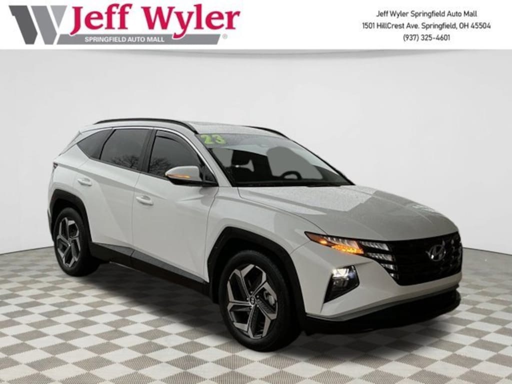 Jeff Wyler Springfield Auto Mall is pleased to offer this terrific 2023 Hyundai Tucson SEL in Serenity White Pearl. Well equipped with: Convenience Package (10.25 Digital Instrument Cluster, Auto-Dimming Interior Mirror w/Homelink, Dual Automatic Temperature Control, H-Tex Seat Trim, Leather-Wrapped Shift Knob, Leather-Wrapped Steering Wheel, LED Interior Lights (Room, Map), Option Group 02, Power Sunroof, Ultrasonic Rear Occupant Alert, and Wheels: 19 x 7.5J Machine-Face Finish Alloy), 3.648 Axle Ratio, 4-Wheel Disc Brakes, 6 Speakers, ABS brakes, Air Conditioning, Alloy wheels, AM/FM radio: SiriusXM, Apple CarPlay & Android Auto, Auto High-beam Headlights, Brake assist, Bumpers: body-color, Cargo Net, Cargo Tray, Carpeted Floor Mats, Delay-off headlights, Driver door bin, Driver vanity mirror, Dual front impact airbags, Dual front side impact airbags, Electronic Stability Control, Emergency communication system: Blue Link Connected Car Service (3-year complimentary subscription), First Aid Kit, Four wheel independent suspension, Front and Rear Mudguards, Front anti-roll bar, Front Bucket Seats, Front Center Armrest, Front reading lights, Fully automatic headlights, Heated door mirrors, Heated Front Bucket Seats, Heated front seats, Illuminated entry, Low tire pressure warning, Occupant sensing airbag, Outside temperature display, Overhead airbag, Overhead console, Panic alarm, Passenger door bin, Passenger vanity mirror, Power door mirrors, Power driver seat, Power Liftgate, Power steering, Power windows, Radio data system, Radio: AM/FM/HD/SiriusXM Audio System, Rear anti-roll bar, Rear Bumper Applique, Rear seat center armrest, Rear window defroster, Rear window wiper, Remote keyless entry, Roof rack: rails only, Security system, Speed control, Split folding rear seat, Spoiler, Stain & Odor Resistant Cloth Seat Trim, Steering wheel mounted audio controls, Tachometer, Telescoping steering wheel, Tilt steering wheel, Traction control, Trip computer, Turn signal indicator mirrors, Variably intermittent wipers, and Wheels: 17 x 7.0J Alloy. Ask about available certifications. Used vehicles 10 years of age or newer with less than 100,000 miles are eligible for the Wyler Assurance Program, but eligible vehicles must pass our reconditioning process and multi-point inspection. Provided the vehicle passes inspection, vehicles will be eligible for the 6 month/6,000 mile limited warranty. The 6 month/6,000 mile limited warranty is NOT available on AS-IS vehicles, wholesale vehicles, lease buyback/pass-thru vehicles or un-inspected vehicles. Note that this program can also apply to vehicles where the remaining factory coverage is less than 6 months or 6,000 miles. Please check the Federal Trade Commission (FTC) Buyers guide on the vehicle for full details as to whether or not warranty coverage may apply. Contact Dealer for additional details. The Wyler Assurance 6 month/6,000 Mile limited warranty ends 6 months from the date of the Retail Purchase Agreement (BUYERS ORDER) or when the vehicle's odometer registers 6,000 additional miles to the mileage listed on the BUYERS ORDER, whichever comes first. Your Deductible - The warranty holder on your contract pays the first $100 of each covered repair.