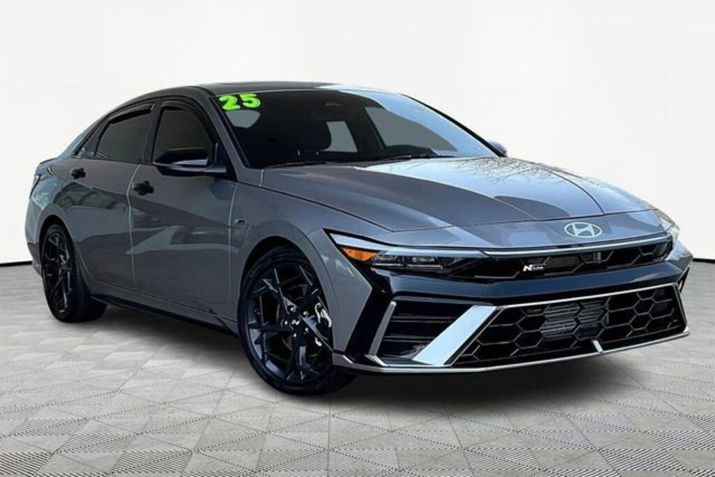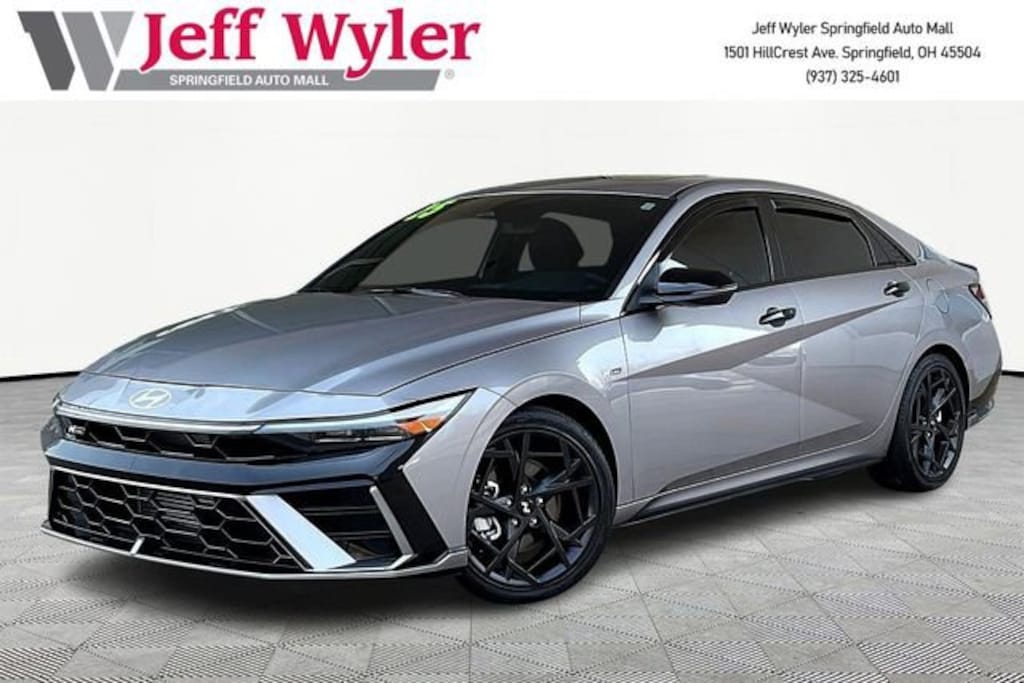 Jeff Wyler Springfield Auto Mall is honored to offer this wonderful 2025 Hyundai Elantra N Line in Fluid Metal. Well equipped with: Option Group 01, 18 x 7.5J Alloy Wheels, 4-Wheel Disc Brakes, 8 Speakers, ABS brakes, Air Conditioning, Alloy wheels, AM/FM radio: SiriusXM, Apple CarPlay & Android Auto, Auto High-beam Headlights, Automatic temperature control, Brake assist, Bumpers: body-color, Carpeted Floor Mats, Combination Cloth & Leatherette Seating Surfaces, Delay-off headlights, Driver door bin, Driver vanity mirror, Dual front impact airbags, Dual front side impact airbags, Electronic Stability Control, Emergency communication system: Bluelink+, Exterior Parking Camera Rear, First Aid Kit, Four wheel independent suspension, Front anti-roll bar, Front Bucket Seats, Front Center Armrest, Front dual zone A/C, Front reading lights, Fully automatic headlights, Heated door mirrors, Heated front seats, Heated Front Sport Bucket Seats, Illuminated entry, Leather Shift Knob, Leather steering wheel, Low tire pressure warning, Navigation System, Occupant sensing airbag, Outside temperature display, Overhead airbag, Overhead console, Panic alarm, Passenger door bin, Passenger vanity mirror, Power door mirrors, Power driver seat, Power moonroof, Power steering, Power windows, Radio: AM/FM/HD/SiriusXM Display Audio, Rear anti-roll bar, Rear seat center armrest, Rear side impact airbag, Rear window defroster, Remote keyless entry, Reversible Cargo Tray, Roadside Assistance Kit, Security system, Severe Weather Kit, Speed control, Speed-sensing steering, Split folding rear seat, Spoiler, Sport steering wheel, Steering wheel mounted audio controls, Tachometer, Telescoping steering wheel, Tilt steering wheel, Traction control, Trip computer, Turn signal indicator mirrors, and Variably intermittent wipers. Ask about available certifications. Used vehicles 10 years of age or newer with less than 100,000 miles are eligible for the Wyler Assurance Program, but eligible vehicles must pass our reconditioning process and multi-point inspection. Provided the vehicle passes inspection, vehicles will be eligible for the 6 month/6,000 mile limited warranty. The 6 month/6,000 mile limited warranty is NOT available on AS-IS vehicles, wholesale vehicles, lease buyback/pass-thru vehicles or un-inspected vehicles. Note that this program can also apply to vehicles where the remaining factory coverage is less than 6 months or 6,000 miles. Please check the Federal Trade Commission (FTC) Buyers guide on the vehicle for full details as to whether or not warranty coverage may apply. Contact Dealer for additional details. The Wyler Assurance 6 month/6,000 Mile limited warranty ends 6 months from the date of the Retail Purchase Agreement (BUYERS ORDER) or when the vehicle's odometer registers 6,000 additional miles to the mileage listed on the BUYERS ORDER, whichever comes first. Your Deductible - The warranty holder on your contract pays the first $100 of each covered repair.