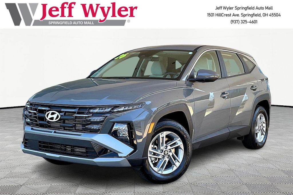 Jeff Wyler Springfield Auto Mall is pleased to offer this terrific-looking 2026 Hyundai Tucson SE in Hampton Gray. Well equipped with: Option Group 01, 17" x 7.0J Alloy Wheels, 4-Wheel Disc Brakes, 6 Speakers, ABS brakes, Air Conditioning, Alloy wheels, AM/FM radio: SiriusXM, Apple CarPlay & Android Auto, Auto High-beam Headlights, Brake assist, Bumpers: body-color, Cargo Blocks, Cargo Cover, Cargo Net, Cargo Organizer, Cargo Tray, Carpeted Floor Mats, Cloth Seat Trim, Delay-off headlights, Driver door bin, Driver vanity mirror, Dual front impact airbags, Dual front side impact airbags, Electronic Stability Control, Emergency communication system: None, First Aid Kit, Four wheel independent suspension, Front anti-roll bar, Front Bucket Seats, Front Center Armrest, Front reading lights, Fully automatic headlights, Illuminated entry, Low tire pressure warning, Mudguards, Occupant sensing airbag, Outside temperature display, Overhead airbag, Overhead console, Panic alarm, Passenger door bin, Passenger vanity mirror, Power door mirrors, Power steering, Power windows, Radio data system, Radio: AM/FM/HD Audio System, Rear anti-roll bar, Rear reading lights, Rear seat center armrest, Rear side impact airbag, Rear window defroster, Rear window wiper, Remote keyless entry, Security system, Speed control, Split folding rear seat, Spoiler, Steering wheel mounted audio controls, Tachometer, Telescoping steering wheel, Tilt steering wheel, Traction control, Trip computer, and Variably intermittent wipers. Ask about available certifications. Used vehicles 10 years of age or newer with less than 100,000 miles are eligible for the Wyler Assurance Program, but eligible vehicles must pass our reconditioning process and multi-point inspection. Provided the vehicle passes inspection, vehicles will be eligible for the 6 month/6,000 mile limited warranty. The 6 month/6,000 mile limited warranty is NOT available on AS-IS vehicles, wholesale vehicles, lease buyback/pass-thru vehicles or un-inspected vehicles. Note that this program can also apply to vehicles where the remaining factory coverage is less than 6 months or 6,000 miles. Please check the Federal Trade Commission (FTC) Buyers guide on the vehicle for full details as to whether or not warranty coverage may apply. Contact Dealer for additional details. The Wyler Assurance 6 month/6,000 Mile limited warranty ends 6 months from the date of the Retail Purchase Agreement (BUYERS ORDER) or when the vehicle's odometer registers 6,000 additional miles to the mileage listed on the BUYERS ORDER, whichever comes first. Your Deductible - The warranty holder on your contract pays the first $100 of each covered repair.