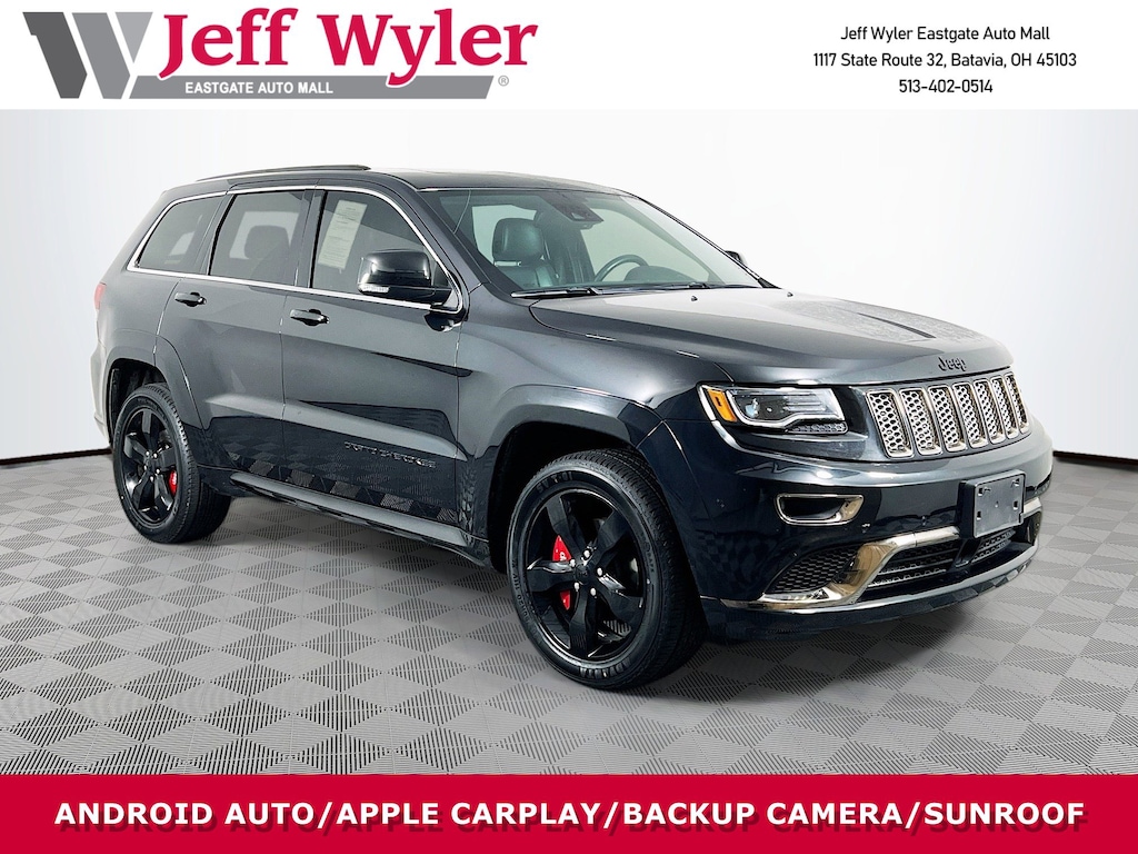 Jeff Wyler Eastgate Auto Mall is excited to offer this charming 2016 Jeep Grand Cherokee High Altitude in Brilliant Black Crystal Pearlcoat. Well equipped with: Advanced Technology Group (Adaptive Cruise Control w/Stop, Advanced Brake Assist, Blind Spot & Cross Path Detection, and Full Speed FWD Collision Warn Plus), Quick Order Package 23S High Altitude (Black Accent Stitching, Black Headlamp Bezels, Body Color Door Handles, Body Color Exterior Mirrors, Body Color Fascia w/Trivalent Rings, Body Color Sill Extension, Bright Pedals, Dual Dark Chrome Exhaust Tip, Jeep Black Gloss Badging, Leather Trim Seats w/Edge Welting w/2S, Leather Wrapped Steering Wheel, Rear Fascia Gloss Black Step Pad, Taillamp Bezels w/Trivalent Finish, Trivalent Fascia Applique, Trivalent Finish Fog Lamp Bezels, and Wheels: 20" x 8.0" Aluminum w/Black Finish), 10 Speakers, 20" x 8.0" Aluminum Wheels, 3.45 Rear Axle Ratio, 4-Wheel Disc Brakes, 8.4" Touchscreen Display, ABS brakes, Air Conditioning, Alloy wheels, AM/FM radio: SiriusXM, Anti-whiplash front head restraints, Audio memory, Auto High-beam Headlights, Auto-dimming door mirrors, Auto-dimming Rear-View mirror, Auto-leveling suspension, Automatic temperature control, Brake assist, Bumpers: body-color, Compass, Delay-off headlights, Driver door bin, Driver vanity mirror, Dual front impact airbags, Dual front side impact airbags, Electronic Stability Control, Emergency communication system: Uconnect Access, Engine Oil Cooler, Exterior Parking Camera Rear, Four wheel independent suspension, Front anti-roll bar, Front Bucket Seats, Front Center Armrest w/Storage, Front dual zone A/C, Front fog lights, Front reading lights, Fully automatic headlights, Garage door transmitter, Genuine wood dashboard insert, Heated door mirrors, Heated front seats, Heated rear seats, Heated steering wheel, High intensity discharge headlights: Bi-Xenon, Illuminated entry, Instrument Cluster w/Off-Road Disp. Pages, Knee airbag, Leather Shift Knob, Leather steering wheel, Leather Trim Seats w/Edge Welting, Low tire pressure warning, Manufacturer's Statement of Origin, Memory seat, Navigation System, Normal Duty Suspension, Occupant sensing airbag, Outside temperature display, Overhead airbag, Overhead console, Panic alarm, Passenger door bin, Passenger vanity mirror, Power door mirrors, Power driver seat, Power Liftgate, Power moonroof, Power passenger seat, Power steering, Power windows, Radio data system, Radio: Uconnect 8.4 NAV, Rain sensing wipers, Rear anti-roll bar, Rear Parking Sensors, Rear reading lights, Rear seat center armrest, Rear window defroster, Rear window wiper, Remote keyless entry, Roof rack: rails only, Security system, Single Disc Remote CD Player, Speed control, Speed-Sensitive Wipers, Split folding rear seat, Spoiler, Steering wheel mounted audio controls, Tachometer, Telescoping steering wheel, Tilt steering wheel, Traction control, Trip computer, Turn signal indicator mirrors, Variably intermittent wipers, and Ventilated front seats. Ask about available certifications. Used vehicles 10 years of age or newer with less than 100,000 miles are eligible for the Wyler Assurance Program, but eligible vehicles must pass our reconditioning process and multi-point inspection. Provided the vehicle passes inspection, vehicles will be eligible for the 6 month/6,000 mile limited warranty. The 6 month/6,000 mile limited warranty is NOT available on AS-IS vehicles, wholesale vehicles, lease buyback/pass-thru vehicles or un-inspected vehicles. Note that this program can also apply to vehicles where the remaining factory coverage is less than 6 months or 6,000 miles. Please check the Federal Trade Commission (FTC) Buyers guide on the vehicle for full details as to whether or not warranty coverage may apply. Contact Dealer for additional details. The Wyler Assurance 6 month/6,000 Mile limited warranty ends 6 months from the date of the Retail Purchase Agreement (BUYERS ORDER) or when the vehicle's odometer registers