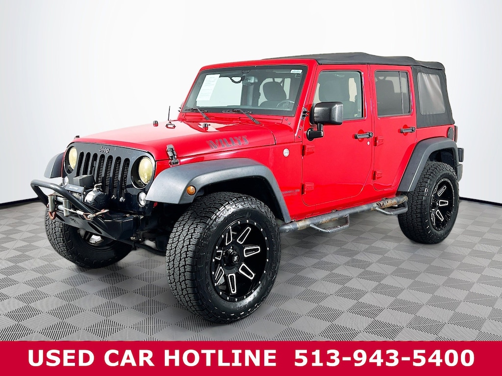 Jeff Wyler Eastgate Auto Mall is pleased to offer this good-looking 2017 Jeep Wrangler Unlimited Willys in Firecracker Red Clearcoat. Well equipped with: Connectivity Group (Remote USB Port, Tire Pressure Monitoring Display, Uconnect Voice Command w/Bluetooth, and Vehicle Information Center), Quick Order Package 24W Willys Wheeler (1-Yr SiriusXM Radio Service, 4-Wheel Drive Swing Gate Decal, Anti-Spin Differential Rear Axle, Auto-Dimming Mirror w/Reading Lamp, Black Jeep Grille Badge, Deep Tint Sunscreen Windows, Front 1-Touch Down Power Windows, Jeep Trail Rated Kit, MOPAR Slush Mats, Performance Suspension, Power Convenience Group, Power Heated Mirrors, Power Locks, Rear Passenger Assist Handles Kit, Remote Keyless Entry, Security Alarm, SIRIUS Satellite Radio, Wheels: 17" x 7.5" High Gloss Black Willys, Willys Hood Decal, and Willys Wheeler Grille), Willys Wheeler Package, 16" x 7.0" Luxury Styled Steel Wheels, 4-Wheel Disc Brakes, 8 Speakers, ABS brakes, Air Conditioning, AM/FM radio, Brake assist, CD player, Cloth Seats w/Adjustable Head Restraints, Compass, Driver door bin, Driver vanity mirror, Dual front impact airbags, Electronic Stability Control, Front anti-roll bar, Front Bucket Seats, Front Center Armrest w/Storage, Front fog lights, Integrated roll-over protection, Low tire pressure warning, Normal Duty Suspension, Occupant sensing airbag, Outside temperature display, Passenger door bin, Passenger vanity mirror, Power steering, Radio: 130, Rear anti-roll bar, Speed control, Split folding rear seat, Steering wheel mounted audio controls, Tachometer, Tilt steering wheel, Traction control, Trip computer, and Variably intermittent wipers. Clean CARFAX. Awards: * 2017 KBB.com 10 Most Awarded Brands Ask about available certifications. Used vehicles 10 years of age or newer with less than 100,000 miles are eligible for the Wyler Assurance Program, but eligible vehicles must pass our reconditioning process and multi-point inspection. Provided the vehicle passes inspection, vehicles will be eligible for the 6 month/6,000 mile limited warranty. The 6 month/6,000 mile limited warranty is NOT available on AS-IS vehicles, wholesale vehicles, lease buyback/pass-thru vehicles or un-inspected vehicles. Note that this program can also apply to vehicles where the remaining factory coverage is less than 6 months or 6,000 miles. Please check the Federal Trade Commission (FTC) Buyers guide on the vehicle for full details as to whether or not warranty coverage may apply. Contact Dealer for additional details. The Wyler Assurance 6 month/6,000 Mile limited warranty ends 6 months from the date of the Retail Purchase Agreement (BUYERS ORDER) or when the vehicle's odometer registers 6,000 additional miles to the mileage listed on the BUYERS ORDER, whichever comes first. Your Deductible - The warranty holder on your contract pays the first $100 of each covered repair.