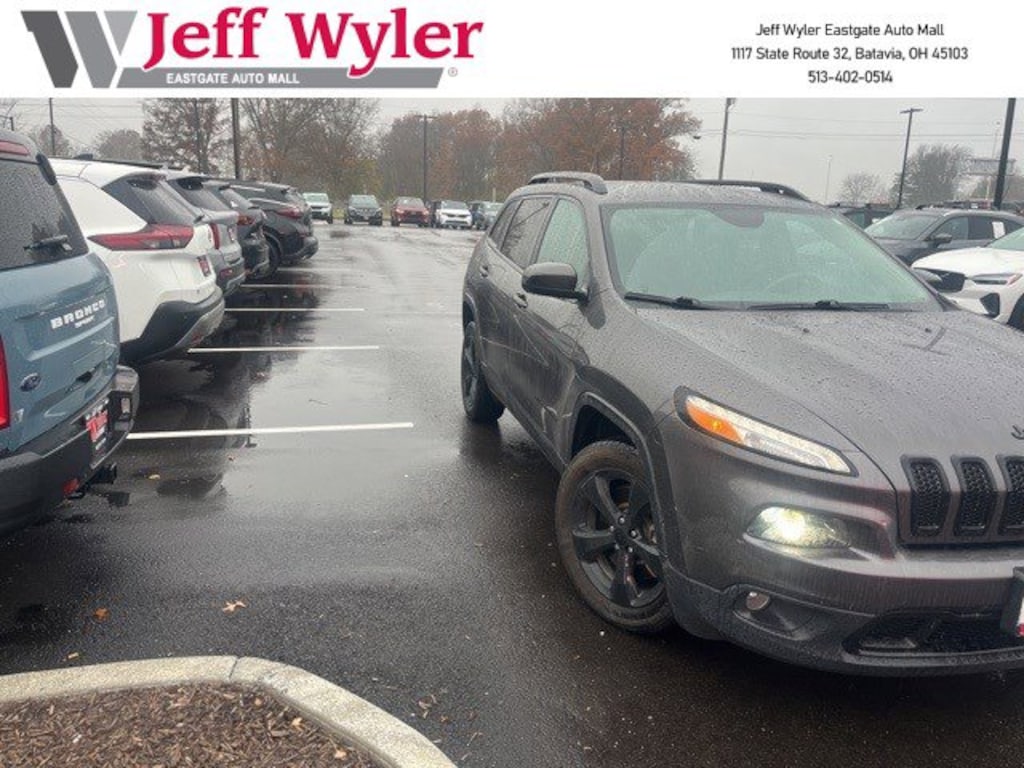 Jeff Wyler Eastgate Auto Mall is honored to offer this wonderful-looking 2018 Jeep Cherokee Latitude in Granite Crystal Metallic Clearcoat. Well equipped with: Altitude Package (Black Day Light Opening Moldings, Gloss Black Exterior Badging, Gloss Black Fascia Applique, Gloss Black Grille Surrounds, Gloss Black Roof Rails, and Wheels: 18" x 7" Gloss Black 5-Spoke Aluminum), Cold Weather Group (Accessory Switch Bank Module, Air Conditioning, All-Season Floor Mats, Engine Block Heater, Exterior Mirrors w/Heating Element, Heated Front Seats, Heated Steering Wheel, Leather Wrapped Steering Wheel, Power Heated Mirrors, Remote Start System, Steering Wheel Mounted Audio Controls, and Windshield Wiper De-Icer), Quick Order Package 24J, 17" x 7" Aluminum Wheels, 3.734 Axle Ratio, 4-Wheel Disc Brakes, 6 Speakers, 600 Amp Maintenance Free Battery, ABS brakes, Active Grille Shutters, Alloy wheels, AM/FM radio, Anti-whiplash front head restraints, Brake assist, Bumpers: body-color, Cloth Low-Back Bucket Seats, Compass, Delay-off headlights, Driver door bin, Driver vanity mirror, Dual front impact airbags, Dual front side impact airbags, Electronic Stability Control, Engine Oil Cooler, Flex Fuel Vehicle, Four wheel independent suspension, Front anti-roll bar, Front Bucket Seats, Front Center Armrest, Front fog lights, Front License Plate Bracket, Front reading lights, Fully automatic headlights, High intensity discharge headlights: Bi-Xenon, Illuminated entry, Knee airbag, Low tire pressure warning, Normal Duty Suspension, Occupant sensing airbag, Outside temperature display, Overhead airbag, Overhead console, Panic alarm, ParkView Rear Back-Up Camera, Passenger door bin, Passenger vanity mirror, Power door mirrors, Power steering, Power windows, Radio data system, Radio: Uconnect 3 w/5" Display, Rear anti-roll bar, Rear reading lights, Rear seat center armrest, Rear side impact airbag, Rear window defroster, Rear window wiper, Remote keyless entry, Roof rack: rails only, SiriusXM Satellite Radio, Speed control, Speed-sensing steering, Split folding rear seat, Spoiler, Tachometer, Telescoping steering wheel, Tilt steering wheel, Traction control, Trip computer, Variably intermittent wipers, and Voltmeter. Clean CARFAX. Awards: * 2018 KBB.com 10 Most Awarded Brands Ask about available certifications. Used vehicles 10 years of age or newer with less than 100,000 miles are eligible for the Wyler Assurance Program, but eligible vehicles must pass our reconditioning process and multi-point inspection. Provided the vehicle passes inspection, vehicles will be eligible for the 6 month/6,000 mile limited warranty. The 6 month/6,000 mile limited warranty is NOT available on AS-IS vehicles, wholesale vehicles, lease buyback/pass-thru vehicles or un-inspected vehicles. Note that this program can also apply to vehicles where the remaining factory coverage is less than 6 months or 6,000 miles. Please check the Federal Trade Commission (FTC) Buyers guide on the vehicle for full details as to whether or not warranty coverage may apply. Contact Dealer for additional details. The Wyler Assurance 6 month/6,000 Mile limited warranty ends 6 months from the date of the Retail Purchase Agreement (BUYERS ORDER) or when the vehicle's odometer registers 6,000 additional miles to the mileage listed on the BUYERS ORDER, whichever comes first. Your Deductible - The warranty holder on your contract pays the first $100 of each covered repair.