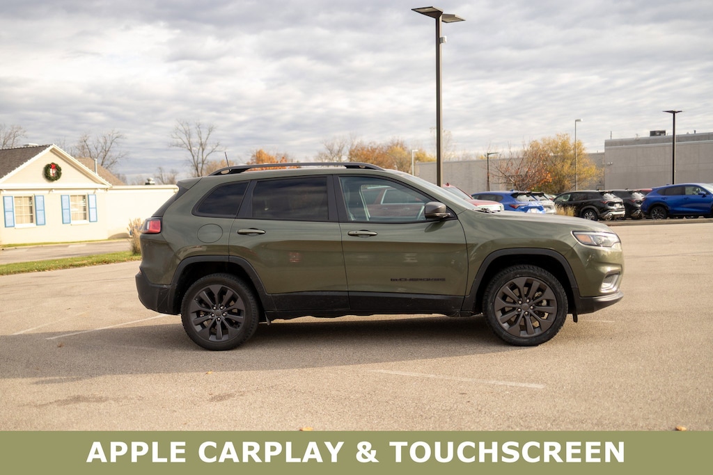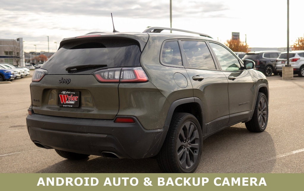 Jeff Wyler Acura of Dayton is pumped up to offer this charming 2021 Jeep Cherokee Latitude Lux in Olive Green Pearlcoat. Comfort/Convenience Group (115V Auxiliary Power Outlet, Auto-Dimming Rear-View Mirror, Power Liftgate, Security Alarm, and Universal Garage Door Opener), Quick Order Package 26U 80th (8.4" Touchscreen Display, Air Conditioning ATC w/Dual Zone Control, Anodized Gun Metal Interior Accents, Berber Floor Mats w/80th Anniversary Tag, Black Day Light Opening Moldings, Cluster 7" TFT Color Display, Granite Crystal Exterior Accents, Granite Crystal Exterior Badging, Granite Crystal Grille Surrounds, Granite Crystal Rear Fascia Applique, Granite Crystal Roof Rails, Humidity Sensor, Jeep 80th Anniversary Badges, Jeep 80th Anniversary Edition, Jeep 80th Anniversary Instrumental Panel Applique, Leather Trimmed Bucket Seats, Light Tungsten Interior Accents, Power Front/Fixed Rear Full Sunroof, Premium Air Filter, Radio: Uconnect 4 w/8.4" Display, Rear Fascia Lower Valance Matte Black, and Wheels: 19" x 7.5" Granite Crystal Aluminum), 3.734 Axle Ratio, 4-Wheel Disc Brakes, 6 Speakers, ABS brakes, Air Conditioning, Alloy wheels, AM/FM radio: SiriusXM, Anti-whiplash front head restraints, Apple CarPlay/Android Auto, AutoStick Automatic Transmission, Auxiliary Transmission Oil Cooler, Brake assist, Bumpers: body-color, Compass, Delay-off headlights, Driver door bin, Driver vanity mirror, Dual Bright Exhaust Tips, Dual front impact airbags, Dual front side impact airbags, Electronic Stability Control, Engine Oil Cooler, Four wheel independent suspension, Front anti-roll bar, Front Bucket Seats, Front Center Armrest, Front fog lights, Front License Plate Bracket, Front reading lights, Fully automatic headlights, Heated door mirrors, Heated front seats, Heated steering wheel, Illuminated entry, Knee airbag, Leather Shift Knob, Liquid Titanium Door Trim Appliques, Low tire pressure warning, Manuf Statement of Origin, Normal Duty Suspension, Occupant sensing airbag, Outside temperature display, Overhead airbag, Overhead console, Panic alarm, ParkView Rear Back-Up Camera, Passenger door bin, Passenger vanity mirror, Power door mirrors, Power driver seat, Power passenger seat, Power steering, Power windows, Premium Leather Trimmed Bucket Seats, Radio data system, Radio: Uconnect 4 w/7" Display, Rain sensing wipers, Rear anti-roll bar, Rear reading lights, Rear seat center armrest, Rear side impact airbag, Rear window defroster, Rear window wiper, Remote keyless entry, Speed control, Speed-sensing steering, Split folding rear seat, Spoiler, Steering wheel mounted audio controls, Stop-Start Multiple VSM System, Tachometer, Telescoping steering wheel, Tilt steering wheel, Traction control, Trip computer, Turn signal indicator mirrors, Variably intermittent wipers, Voltmeter, and Wheels: 17" x 7" Satin Carbon Aluminum Our PRE-OWNED vehicles are put through a rigorous 167- POINT QUALITY ASSURANCE INSPECTION along with an average amount of over $1,400.00 SPENT to recondition each vehicle so we can be sure to deliver you the highest quality vehicle like you deserve! ***ONLINE PRICE DOES NOT INCLUDE WYLER FAMILY FIRST PACKAGE*** Stop by 4136 Shelbyville Road to see for yourself, or give us a call @ 502-897-3151 to schedule your test drive! CARFAX One-Owner.