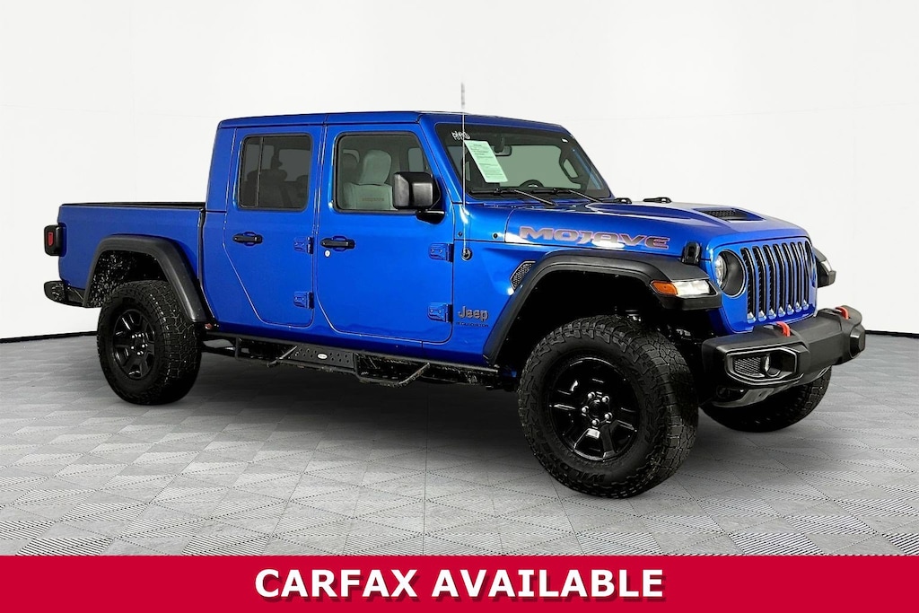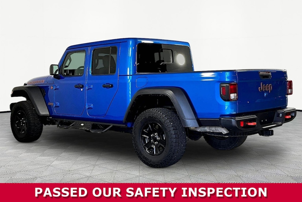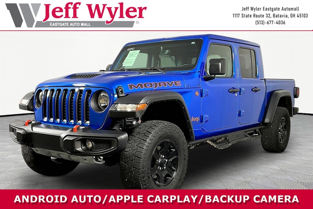 Jeff Wyler Eastgate Auto Mall is honored to offer this charming 2023 Jeep Gladiator Mojave in Hydro Blue Pearlcoat. Well equipped with: Cold Weather Group (Heated Front Seats and Heated Steering Wheel), Quick Order Package 24D Mojave, Trailer Tow Package (240 Amp Alternator, Class IV Receiver Hitch, Heavy-Duty Engine Cooling, and Trailer Hitch Zoom), 4-Wheel Disc Brakes, 4.10 Rear Axle Ratio, 9 Speakers, 97 MPH Vehicle Max Speed Calibration, ABS brakes, Air Conditioning, Alloy wheels, AM/FM radio: SiriusXM, Apple CarPlay/Android Auto, Auto-dimming Rear-View mirror, Automatic temperature control, Body Color 3-Piece Hard Top, Brake assist, Compass, Delay-off headlights, Driver door bin, Driver vanity mirror, Dual front impact airbags, Dual front side impact airbags, Electronic Stability Control, Emergency communication system, Freedom Panel Storage Bag, Front anti-roll bar, Front Bucket Seats, Front Center Armrest w/Storage, Front dual zone A/C, Front fog lights, Front License Plate Bracket, Front reading lights, Fully automatic headlights, Garage door transmitter, Heated door mirrors, Heavy Duty Suspension w/Gas Shocks, Illuminated entry, Integrated roll-over protection, Leather steering wheel, Low tire pressure warning, MOPAR Spray In Bedliner, Navigation System, No Soft Top, Occupant sensing airbag, Outside temperature display, Panic alarm, ParkView Rear Back-Up Camera, Passenger door bin, Passenger vanity mirror, Power door mirrors, Power steering, Power windows, Premium Cloth Seats w/Sport Bolsters, Radio data system, Radio: Uconnect 4C Nav w/8.4" Display, Rear anti-roll bar, Rear reading lights, Rear Sliding Window, Rear Window Defroster, Remote keyless entry, Security system, Speed control, Split folding rear seat, Steering wheel mounted audio controls, Tachometer, Telescoping steering wheel, Tilt steering wheel, Traction control, Trip computer, Variably intermittent wipers, Voltmeter, and Wheels: 17" x 7.5" Low Gloss Black Aluminum. Clean CARFAX. Ask about available certifications. Used vehicles 10 years of age or newer with less than 100,000 miles are eligible for the Wyler Assurance Program, but eligible vehicles must pass our reconditioning process and multi-point inspection. Provided the vehicle passes inspection, vehicles will be eligible for the 6 month/6,000 mile limited warranty. The 6 month/6,000 mile limited warranty is NOT available on AS-IS vehicles, wholesale vehicles, lease buyback/pass-thru vehicles or un-inspected vehicles. Note that this program can also apply to vehicles where the remaining factory coverage is less than 6 months or 6,000 miles. Please check the Federal Trade Commission (FTC) Buyers guide on the vehicle for full details as to whether or not warranty coverage may apply. Contact Dealer for additional details. The Wyler Assurance 6 month/6,000 Mile limited warranty ends 6 months from the date of the Retail Purchase Agreement (BUYERS ORDER) or when the vehicle's odometer registers 6,000 additional miles to the mileage listed on the BUYERS ORDER, whichever comes first. Your Deductible - The warranty holder on your contract pays the first $100 of each covered repair.
