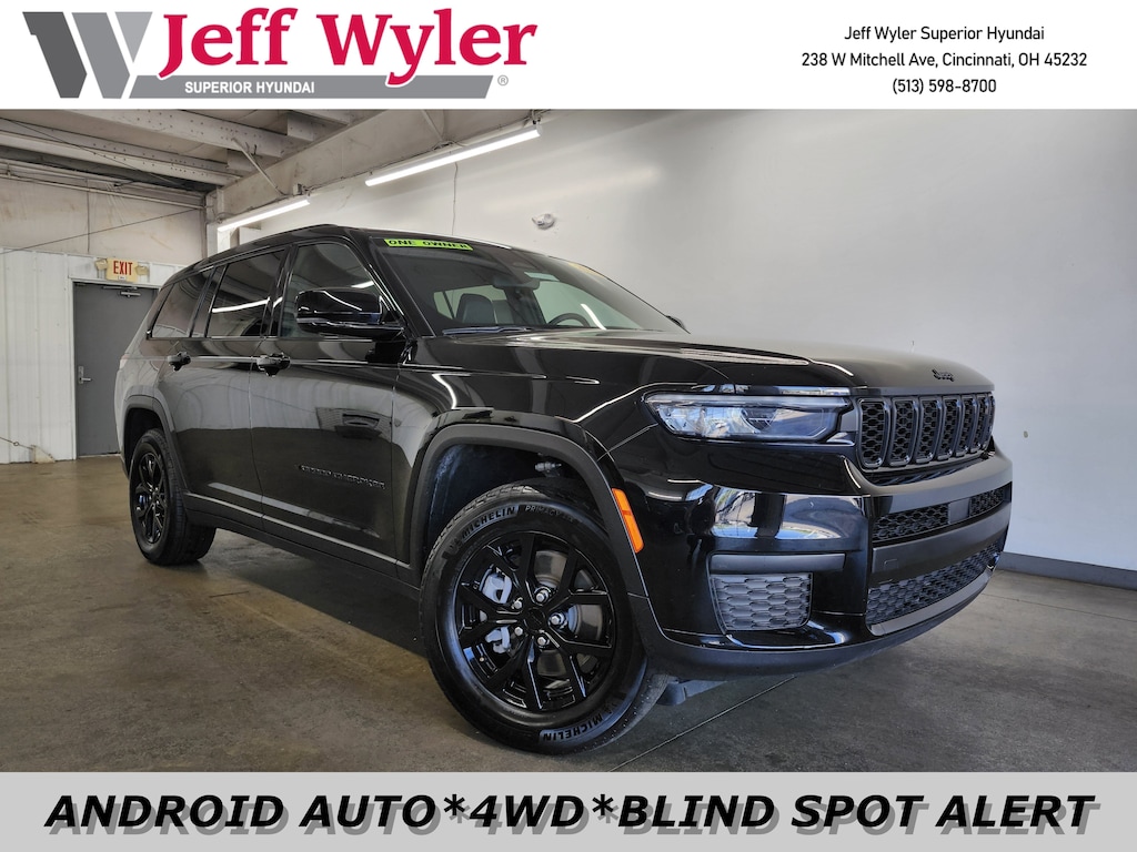 Jeff Wyler Superior Hyundai is very proud to offer this handsome 2024 Jeep Grand Cherokee L Altitude in Diamond Black Crystal Pearlcoat. Well equipped with: Altitude Appearance Package, Quick Order Package 23B Altitude (115V Auxiliary Power Outlet, 3rd Row Charge-Only USB Ports, Black Headliner, Capri Leatherette/Suede Seats, Delete Laredo Badge, Gloss Black Exterior Accents, Heated Front Seats, Heated Steering Wheel, Power Liftgate, Rain Sensitive Windshield Wipers, Remote Start System, Selectable Tire Fill Alert, Wheels: 18" x 8.0" Fully Painted Aluminum 1, and Wireless Charging Pad), 2nd Row 60/40 Bench w/Manual Tip/Slide, 2nd Row Seat Center Armrest/Cupholders, 3 Rear Seat Head Restraints, 3.45 Rear Axle Ratio, 3rd row seats: split-bench, 4-Wheel Disc Brakes, 6 Speakers, 7-Passenger Seating, ABS brakes, Air Conditioning, Alloy wheels, Anti-whiplash front head restraints, Automatic temperature control, Brake assist, Bumpers: body-color, Center Rear 3-Point Seat Belt, Cloth Seats, Compass, Delay-off headlights, Driver door bin, Driver vanity mirror, Dual front impact airbags, Dual front side impact airbags, Electronic Stability Control, Emergency communication system, Four wheel independent suspension, Front anti-roll bar, Front Bucket Seats, Front Center Armrest w/Storage, Front dual zone A/C, Front License Plate Bracket, Front reading lights, Fully automatic headlights, Heated door mirrors, Illuminated entry, Knee airbag, Low tire pressure warning, Manual Fold Seatbacks, Normal Duty Suspension, Occupant sensing airbag, Outside temperature display, Overhead airbag, Overhead console, Panic alarm, ParkView Rear Back-Up Camera, Passenger door bin, Passenger vanity mirror, Power door mirrors, Power driver seat, Power steering, Power windows, Radio data system, Radio: Uconnect 5 w/8.4" Display, Rear air conditioning, Rear anti-roll bar, Rear reading lights, Rear window defroster, Rear window wiper, Reclining 3rd row seat, Remote keyless entry, Security system, Speed control, Speed-Sensitive Wipers, Split folding rear seat, Spoiler, Steering wheel mounted audio controls, Tachometer, Telescoping steering wheel, Tilt steering wheel, Traction control, Trip computer, Variably intermittent wipers, Voltmeter, and Wheels: 18" x 8.0" Fully Painted Aluminum. CARFAX One-Owner. Clean CARFAX. This sales price excludes tax, title, and dealer fees. While every reasonable effort is made to ensure the accuracy of this information, we are not responsible for any errors or omissions contained on these pages. Used vehicles 10 years of age or newer with less than 100,000 miles are eligible for the Wyler Assurance Program, but eligible vehicles must pass our reconditioning process and multi-point inspection. Provided the vehicle passes inspection, vehicles will be eligible for the 6 month/6,000 mile limited warranty. The 6 month/6,000 mile limited warranty is NOT available on AS-IS vehicles, wholesale vehicles, lease buyback/pass-thru vehicles or un-inspected vehicles. Note that this program can also apply to vehicles where the remaining factory coverage is less than 6 months or 6,000 miles. Please check the Federal Trade Commission (FTC) Buyers guide on the vehicle for full details as to whether or not warranty coverage may apply. Contact Dealer for additional details. The Wyler Assurance 6 month/6,000 Mile limited warranty ends 6 months from the date of the Retail Purchase Agreement (BUYERS ORDER) or when the vehicle's odometer registers 6,000 additional miles to the mileage listed on the BUYERS ORDER, whichever comes first.Your Deductible - The warranty holder on your contract pays the first $100 of each covered repair.