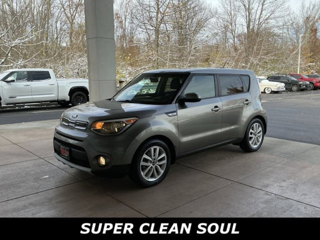 Jeff Wyler Springfield Auto Mall is delighted to offer this attractive-looking 2019 Kia Soul Plus in Titanium Gray. Well equipped with: Audio Package (2 USB Center Console Chargers, Alarm w/Engine Immobilizer, Leather-Wrapped Steering Wheel & Shift Knob, Leatherette Instrument Hood/Door Center/Armrests, Piano Black Accents, Push Button Start w/Smart Key, Radio: harman/kardon Audio System, and Satin Chrome Interior Door Handles), 17 Alloy Wheels, 4-Wheel Disc Brakes, 6 Speakers, 6-Way Adjustable Driver's Seat, ABS brakes, Air Conditioning, Alloy wheels, AM/FM radio: SiriusXM, Apple CarPlay & Android Auto, Automatic temperature control, Brake assist, Bumpers: body-color, Carpeted Floor Mat, Cloth Seat Trim, Driver door bin, Driver vanity mirror, Dual front impact airbags, Dual front side impact airbags, Electronic Stability Control, Emergency communication system, Exterior Parking Camera Rear, Front anti-roll bar, Front Bucket Seats, Front Center Armrest, Front fog lights, Front reading lights, Front wheel independent suspension, Fully automatic headlights, Heated door mirrors, Illuminated entry, Low tire pressure warning, Occupant sensing airbag, Outside temperature display, Overhead airbag, Overhead console, Panic alarm, Passenger door bin, Passenger vanity mirror, Power door mirrors, Power steering, Power windows, Radio: AM/FM/MP3 Audio System, Rear seat center armrest, Rear window defroster, Rear window wiper, Remote keyless entry, Speed control, Speed-sensing steering, Split folding rear seat, Steering wheel mounted audio controls, Tachometer, Telescoping steering wheel, Tilt steering wheel, Traction control, Trip computer, and Variably intermittent wipers. Awards:* 2019 KBB.com 10 Coolest New Cars Under $20,000 * 2019 KBB.com 5-Year Cost to Own Awards Ask about available certifications. Used vehicles 10 years of age or newer with less than 100,000 miles are eligible for the Wyler Assurance Program, but eligible vehicles must pass our reconditioning process and multi-point inspection. Provided the vehicle passes inspection, vehicles will be eligible for the 6 month/6,000 mile limited warranty. The 6 month/6,000 mile limited warranty is NOT available on AS-IS vehicles, wholesale vehicles, lease buyback/pass-thru vehicles or un-inspected vehicles. Note that this program can also apply to vehicles where the remaining factory coverage is less than 6 months or 6,000 miles. Please check the Federal Trade Commission (FTC) Buyers guide on the vehicle for full details as to whether or not warranty coverage may apply. Contact Dealer for additional details. The Wyler Assurance 6 month/6,000 Mile limited warranty ends 6 months from the date of the Retail Purchase Agreement (BUYERS ORDER) or when the vehicle's odometer registers 6,000 additional miles to the mileage listed on the BUYERS ORDER, whichever comes first. Your Deductible - The warranty holder on your contract pays the first $100 of each covered repair.