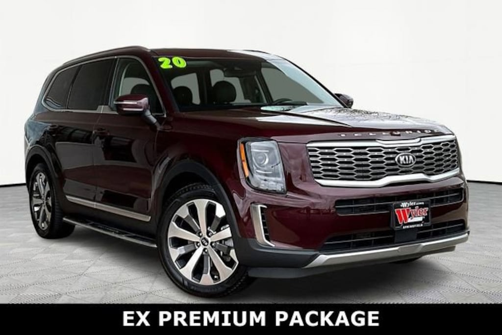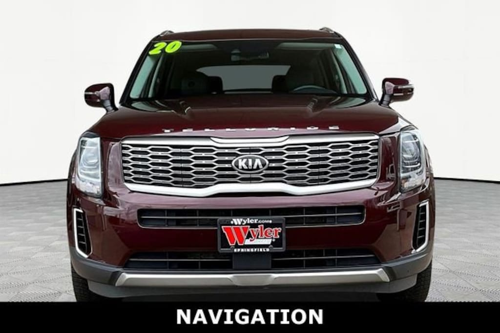 Jeff Wyler Springfield Auto Mall is honored to offer this terrific 2020 Kia Telluride EX in Sangria. Well equipped with: EX Premium Package (20 Alloy Wheels, 20 Wheels, Anodized Roof Rails, and Captain's Chairs), 3.648 Axle Ratio, 3rd row seats: split-bench, 4-Wheel Disc Brakes, 6 Speakers, ABS brakes, Air Conditioning, Alloy wheels, AM/FM radio: SiriusXM, Apple CarPlay & Android Auto, Auto-dimming Rear-View mirror, Automatic temperature control, Brake assist, Bumpers: body-color, Carpeted Floor Mats, Compass, Delay-off headlights, Driver door bin, Driver vanity mirror, Dual front impact airbags, Dual front side impact airbags, Electronic Stability Control, Emergency communication system: 911 Connect, Four wheel independent suspension, Front anti-roll bar, Front Bucket Seats, Front Center Armrest, Front dual zone A/C, Front reading lights, Fully automatic headlights, Heated & Ventilated Front Bucket Seats, Heated door mirrors, Heated front seats, Illuminated entry, Illuminated Scuff Plates, Knee airbag, Leather Shift Knob, Leather steering wheel, Leather-Trimmed Upholstery, Low tire pressure warning, Multi Colored Interior Light Kit, Navigation System, Occupant sensing airbag, Outside temperature display, Overhead airbag, Overhead console, Panic alarm, Passenger door bin, Passenger vanity mirror, Power door mirrors, Power driver seat, Power Liftgate, Power moonroof, Power passenger seat, Power steering, Power windows, Radio data system, Radio: AM/FM/MP3/SiriusXM Audio System, Rear air conditioning, Rear anti-roll bar, Rear audio controls, Rear reading lights, Rear seat center armrest, Rear window defroster, Rear window wiper, Reclining 3rd row seat, Remote keyless entry, Roof rack: rails only, Security system, Speed control, Speed-sensing steering, Split folding rear seat, Spoiler, Steering wheel mounted audio controls, Tachometer, Telescoping steering wheel, Tilt steering wheel, Traction control, Trip computer, Turn signal indicator mirrors, Variably intermittent wipers, Ventilated front seats, and Wheels: 7.5 x 18 Machined Finish Alloy. Awards:* JD Power Automotive Performance, Execution and Layout (APEAL) Study * Motor Trend Automobiles of the year * 2020 KBB.com Best Buy Awards * 2020 KBB.com 10 Best SUVs Worth Waiting For * 2020 KBB.com 10 Favorite New-for-2020 Cars * NACTOY 2020 North American Utility of the Year Ask about available certifications. Used vehicles 10 years of age or newer with less than 100,000 miles are eligible for the Wyler Assurance Program, but eligible vehicles must pass our reconditioning process and multi-point inspection. Provided the vehicle passes inspection, vehicles will be eligible for the 6 month/6,000 mile limited warranty. The 6 month/6,000 mile limited warranty is NOT available on AS-IS vehicles, wholesale vehicles, lease buyback/pass-thru vehicles or un-inspected vehicles. Note that this program can also apply to vehicles where the remaining factory coverage is less than 6 months or 6,000 miles. Please check the Federal Trade Commission (FTC) Buyers guide on the vehicle for full details as to whether or not warranty coverage may apply. Contact Dealer for additional details. The Wyler Assurance 6 month/6,000 Mile limited warranty ends 6 months from the date of the Retail Purchase Agreement (BUYERS ORDER) or when the vehicle's odometer registers 6,000 additional miles to the mileage listed on the BUYERS ORDER, whichever comes first. Your Deductible - The warranty holder on your contract pays the first $100 of each covered repair.