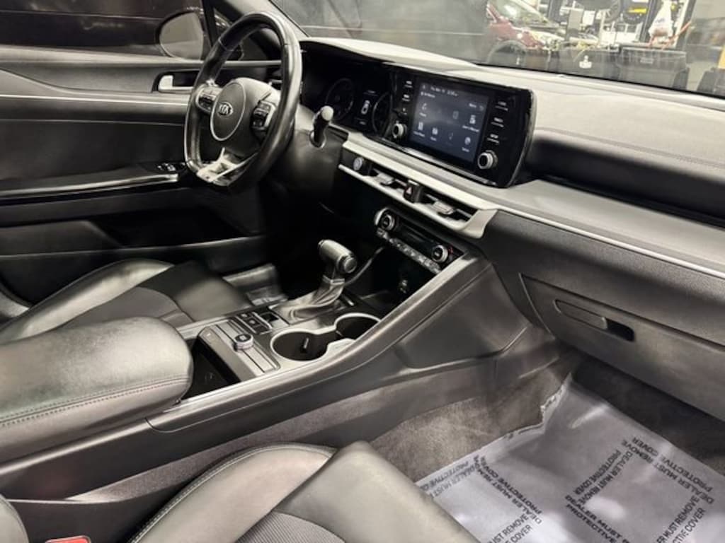 Jeff Wyler Springfield Auto Mall is very proud to offer this good-looking 2021 Kia K5 GT-Line in Ebony Black. Well equipped with: GT-Line FWD Premium Package, 4-Wheel Disc Brakes, 6 Speakers, ABS brakes, Air Conditioning, Alloy wheels, AM/FM radio, Apple CarPlay & Android Auto, Auto High-beam Headlights, Automatic temperature control, Brake assist, Bumpers: body-color, Cargo Mat, Carpeted Floor Mats, Cloth/Leatherette Seat Trim, Delay-off headlights, Driver door bin, Driver vanity mirror, Dual front impact airbags, Dual front side impact airbags, Electronic Stability Control, Four wheel independent suspension, Front anti-roll bar, Front Bucket Seats, Front Center Armrest, Front dual zone A/C, Front fog lights, Front reading lights, Fully automatic headlights, Heated door mirrors, Illuminated Door Sill Plates, Illuminated entry, Knee airbag, Low tire pressure warning, Mud Guards, Occupant sensing airbag, Outside temperature display, Overhead airbag, Overhead console, Panic alarm, Passenger door bin, Passenger vanity mirror, Power door mirrors, Power driver seat, Power steering, Power windows, Radio data system, Radio: AM/FM/MP3 Audio System, Rear anti-roll bar, Rear seat center armrest, Rear side impact airbag, Rear window defroster, Remote keyless entry, Security system, Speed control, Speed-sensing steering, Split folding rear seat, Spoiler, Sport steering wheel, Steering wheel mounted audio controls, Tachometer, Telescoping steering wheel, Tilt steering wheel, Traction control, Trip computer, Turn signal indicator mirrors, Variably intermittent wipers, and Wheels: 7.5J x 18 Graphite Machined Finish Alloy. Ask about available certifications. Used vehicles 10 years of age or newer with less than 100,000 miles are eligible for the Wyler Assurance Program, but eligible vehicles must pass our reconditioning process and multi-point inspection. Provided the vehicle passes inspection, vehicles will be eligible for the 6 month/6,000 mile limited warranty. The 6 month/6,000 mile limited warranty is NOT available on AS-IS vehicles, wholesale vehicles, lease buyback/pass-thru vehicles or un-inspected vehicles. Note that this program can also apply to vehicles where the remaining factory coverage is less than 6 months or 6,000 miles. Please check the Federal Trade Commission (FTC) Buyers guide on the vehicle for full details as to whether or not warranty coverage may apply. Contact Dealer for additional details. The Wyler Assurance 6 month/6,000 Mile limited warranty ends 6 months from the date of the Retail Purchase Agreement (BUYERS ORDER) or when the vehicle's odometer registers 6,000 additional miles to the mileage listed on the BUYERS ORDER, whichever comes first. Your Deductible - The warranty holder on your contract pays the first $100 of each covered repair.