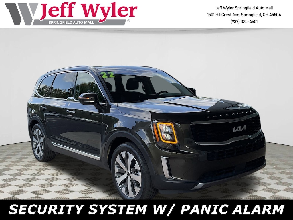 Jeff Wyler Springfield Auto Mall is pleased to offer this terrific-looking 2022 Kia Telluride EX in Dark Moss. Well equipped with: EX Premium Package (20" x 7.5" Machined Alloy Wheels, 2nd Row Captain Chairs, LED Headlamps, and Satin Chrome Roof Rails), Towing Package (Self Leveling Rear Suspension and Tow Hitch w/Harness (TOF)), 3.648 Axle Ratio, 3rd row seats: split-bench, 4-Wheel Disc Brakes, 6 Speakers, ABS brakes, Air Conditioning, Alloy wheels, AM/FM radio: SiriusXM, Apple CarPlay & Android Auto, Auto-dimming Rear-View mirror, Automatic temperature control, Brake assist, Bumpers: body-color, Cargo Seatback Up Mat, Carpeted Floor Mats, Compass, Delay-off headlights, Driver door bin, Driver vanity mirror, Dual front impact airbags, Dual front side impact airbags, Electronic Stability Control, Emergency communication system: 911 Connect, Four wheel independent suspension, Front anti-roll bar, Front Bucket Seats, Front Center Armrest, Front dual zone A/C, Front reading lights, Fully automatic headlights, Heated & Ventilated Front Bucket Seats, Heated door mirrors, Heated front seats, Heated steering wheel, Illuminated entry, Knee airbag, Leather Seat Trim, Leather Shift Knob, Leather steering wheel, Low tire pressure warning, Navigation System, Occupant sensing airbag, Outside temperature display, Overhead airbag, Overhead console, Panic alarm, Passenger door bin, Passenger vanity mirror, Power door mirrors, Power driver seat, Power Liftgate, Power moonroof, Power passenger seat, Power steering, Power windows, Radio data system, Radio: AM/FM Display Audio System, Rear air conditioning, Rear anti-roll bar, Rear audio controls, Rear reading lights, Rear seat center armrest, Rear window defroster, Rear window wiper, Reclining 3rd row seat, Remote keyless entry, Roof rack: rails only, Security system, Smart Key w/ Push Button and Remote Start, Speed control, Speed-sensing steering, Split folding rear seat, Spoiler, Steering wheel mounted audio controls, Tachometer, Telescoping steering wheel, Tilt steering wheel, Traction control, Trip computer, Turn signal indicator mirrors, Variably intermittent wipers, Ventilated front seats, and Wheels: 18" x 7.5" Machined Alloy. Ask about available certifications. Used vehicles 10 years of age or newer with less than 100,000 miles are eligible for the Wyler Assurance Program, but eligible vehicles must pass our reconditioning process and multi-point inspection. Provided the vehicle passes inspection, vehicles will be eligible for the 6 month/6,000 mile limited warranty. The 6 month/6,000 mile limited warranty is NOT available on AS-IS vehicles, wholesale vehicles, lease buyback/pass-thru vehicles or un-inspected vehicles. Note that this program can also apply to vehicles where the remaining factory coverage is less than 6 months or 6,000 miles. Please check the Federal Trade Commission (FTC) Buyers guide on the vehicle for full details as to whether or not warranty coverage may apply. Contact Dealer for additional details. The Wyler Assurance 6 month/6,000 Mile limited warranty ends 6 months from the date of the Retail Purchase Agreement (BUYERS ORDER) or when the vehicle's odometer registers 6,000 additional miles to the mileage listed on the BUYERS ORDER, whichever comes first. Your Deductible - The warranty holder on your contract pays the first $100 of each covered repair.
