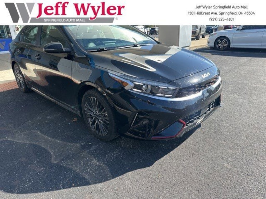 Jeff Wyler Springfield Auto Mall is excited to offer this handsome 2023 Kia Forte GT-Line in Aurora Black Pearl. Well equipped with: GT-Line Technology Package (Electronic Parking Brake (EPB), Forward Collision Avoidance-Assist - Cyclist, Navigation-Based Smart Cruise Control (NSCC), and Smart Cruise Control w/Stop & Go), 17 x 7.0J Alloy Wheels, 4-Wheel Disc Brakes, 6 Speakers, ABS brakes, Air Conditioning, Alloy wheels, AM/FM radio: SiriusXM, Apple CarPlay & Android Auto, Auto High-beam Headlights, Automatic temperature control, Brake assist, Bumpers: body-color, Cloth & SynTex Seat Trim, Delay-off headlights, Driver door bin, Driver vanity mirror, Dual front impact airbags, Dual front side impact airbags, Electronic Stability Control, Emergency communication system, Exterior Parking Camera Rear, Front anti-roll bar, Front Bucket Seats, Front Center Armrest, Front dual zone A/C, Front fog lights, Front reading lights, Front wheel independent suspension, Fully automatic headlights, Heated door mirrors, Illuminated entry, Leather Shift Knob, Leather steering wheel, Low tire pressure warning, Navigation System, Occupant sensing airbag, Outside temperature display, Overhead airbag, Overhead console, Panic alarm, Passenger door bin, Passenger vanity mirror, Power door mirrors, Power steering, Power windows, Radio data system, Radio: 10.25 Display Audio, Rear seat center armrest, Rear window defroster, Remote keyless entry, Security system, Speed control, Split folding rear seat, Spoiler, Sport steering wheel, Steering wheel mounted audio controls, Tachometer, Telescoping steering wheel, Tilt steering wheel, Traction control, Trip computer, Turn signal indicator mirrors, and Variably intermittent wipers. Ask about available certifications. Used vehicles 10 years of age or newer with less than 100,000 miles are eligible for the Wyler Assurance Program, but eligible vehicles must pass our reconditioning process and multi-point inspection. Provided the vehicle passes inspection, vehicles will be eligible for the 6 month/6,000 mile limited warranty. The 6 month/6,000 mile limited warranty is NOT available on AS-IS vehicles, wholesale vehicles, lease buyback/pass-thru vehicles or un-inspected vehicles. Note that this program can also apply to vehicles where the remaining factory coverage is less than 6 months or 6,000 miles. Please check the Federal Trade Commission (FTC) Buyers guide on the vehicle for full details as to whether or not warranty coverage may apply. Contact Dealer for additional details. The Wyler Assurance 6 month/6,000 Mile limited warranty ends 6 months from the date of the Retail Purchase Agreement (BUYERS ORDER) or when the vehicle's odometer registers 6,000 additional miles to the mileage listed on the BUYERS ORDER, whichever comes first. Your Deductible - The warranty holder on your contract pays the first $100 of each covered repair.