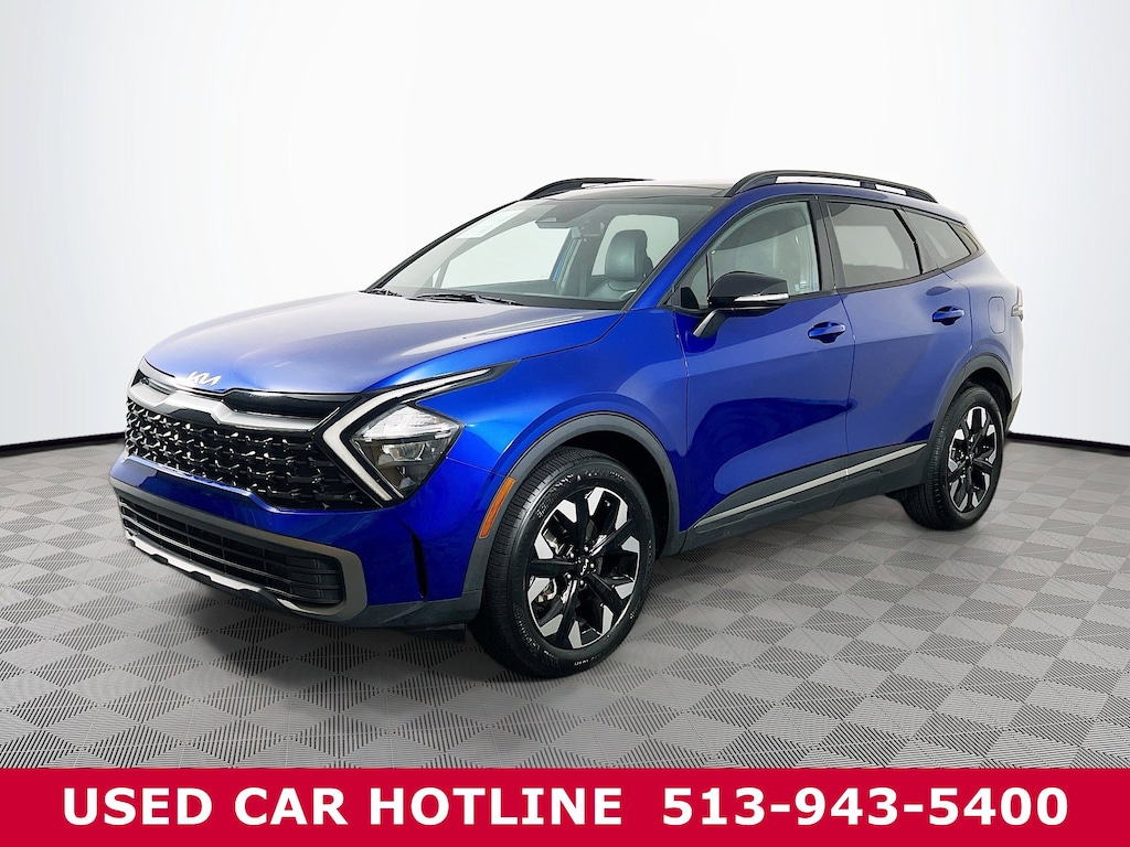 Jeff Wyler Eastgate Auto Mall is very proud to offer this great 2023 Kia Sportage X-Line in Sapphire Blue. Well equipped with: X-Line Premium Package (LED Interior Lighting, Panoramic Sunroof, and Smart Power Liftgate), 4-Wheel Disc Brakes, 6 Speakers, ABS brakes, Air Conditioning, Alloy wheels, AM/FM radio: SiriusXM, Apple CarPlay & Android Auto, Auto High-beam Headlights, Automatic temperature control, Axle Ratio: 3.648, Brake assist, Bumpers: body-color, Carpet Floor Mats X-Line, Compass, Delay-off headlights, Driver door bin, Driver vanity mirror, Dual front impact airbags, Dual front side impact airbags, Electronic Stability Control, Emergency communication system, Four wheel independent suspension, Front anti-roll bar, Front Bucket Seats, Front Center Armrest, Front dual zone A/C, Fully automatic headlights, harman/kardon® Speakers, Heated door mirrors, Heated Front Bucket Seats, Heated front seats, Illuminated entry, Leather Shift Knob, Leather steering wheel, Low tire pressure warning, Navigation System, Occupant sensing airbag, Outside temperature display, Overhead airbag, Overhead console, Panic alarm, Passenger door bin, Passenger vanity mirror, Power door mirrors, Power driver seat, Power steering, Power windows, Premium Leatherette Seat Trim, Radio: AM/FM/HD Audio System, Rain sensing wipers, Rear anti-roll bar, Rear seat center armrest, Rear window defroster, Rear window wiper, Remote keyless entry, Security system, Speed control, Speed-sensing steering, Split folding rear seat, Spoiler, Steering wheel mounted audio controls, Tachometer, Telescoping steering wheel, Tilt steering wheel, Traction control, Trip computer, Turn signal indicator mirrors, Variably intermittent wipers, and Wheels: 19" Gloss Black Alloy. CARFAX One-Owner. Clean CARFAX. Ask about available certifications. Used vehicles 10 years of age or newer with less than 100,000 miles are eligible for the Wyler Assurance Program, but eligible vehicles must pass our reconditioning process and multi-point inspection. Provided the vehicle passes inspection, vehicles will be eligible for the 6 month/6,000 mile limited warranty. The 6 month/6,000 mile limited warranty is NOT available on AS-IS vehicles, wholesale vehicles, lease buyback/pass-thru vehicles or un-inspected vehicles. Note that this program can also apply to vehicles where the remaining factory coverage is less than 6 months or 6,000 miles. Please check the Federal Trade Commission (FTC) Buyers guide on the vehicle for full details as to whether or not warranty coverage may apply. Contact Dealer for additional details. The Wyler Assurance 6 month/6,000 Mile limited warranty ends 6 months from the date of the Retail Purchase Agreement (BUYERS ORDER) or when the vehicle's odometer registers 6,000 additional miles to the mileage listed on the BUYERS ORDER, whichever comes first. Your Deductible - The warranty holder on your contract pays the first $100 of each covered repair.
