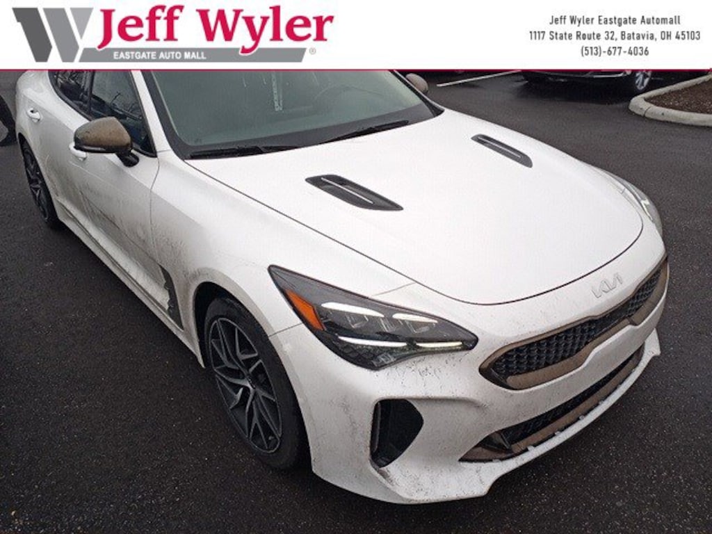 Jeff Wyler Eastgate Auto Mall is proud to offer this attractive-looking 2023 Kia Stinger GT-Line in Snow White Pearl. Well equipped with: Sun & Sound Package (8-Way Power Adjustable Passenger Seat, Power Tilt & Slide Sunroof w/One-Touch, and Radio: harmon/kardon AM/FM/MP3/HD Audio System), 4-Wheel Disc Brakes, 9 Speakers, ABS brakes, Air Conditioning, Alloy wheels, AM/FM radio: SiriusXM, Anti-whiplash front head restraints, Apple CarPlay & Android Auto, Auto High-beam Headlights, Auto-dimming Rear-View mirror, Automatic temperature control, Brake assist, Bumpers: body-color, Carpeted Floor Mat, Delay-off headlights, Driver door bin, Driver vanity mirror, Dual front impact airbags, Dual front side impact airbags, Electronic Stability Control, Emergency communication system, Exterior Parking Camera Rear, Four wheel independent suspension, Front anti-roll bar, Front Bucket Seats, Front Center Armrest, Front dual zone A/C, Front reading lights, Fully automatic headlights, Heated door mirrors, Heated Front Bucket Seats, Heated front seats, Heated steering wheel, Illuminated entry, Knee airbag, Leather Seat Trim, Low tire pressure warning, Navigation System, Occupant sensing airbag, Outside temperature display, Overhead airbag, Overhead console, Panic alarm, Passenger door bin, Passenger vanity mirror, Power door mirrors, Power driver seat, Power steering, Power windows, Radio: AM/FM/MP3/HD Audio System, Rain sensing wipers, Rear air conditioning, Rear anti-roll bar, Rear seat center armrest, Rear window defroster, Remote keyless entry, Security system, Smart Key w/ Push Button and Remote Start, Speed control, Speed-Sensitive Wipers, Split folding rear seat, Sport steering wheel, Steering wheel mounted audio controls, Tachometer, Telescoping steering wheel, Tilt steering wheel, Traction control, Trip computer, Turn signal indicator mirrors, Variably intermittent wipers, and Wheels: 8.0J x 18 Vertex Alloy. CARFAX One-Owner. Ask about available certifications. Used vehicles 10 years of age or newer with less than 100,000 miles are eligible for the Wyler Assurance Program, but eligible vehicles must pass our reconditioning process and multi-point inspection. Provided the vehicle passes inspection, vehicles will be eligible for the 6 month/6,000 mile limited warranty. The 6 month/6,000 mile limited warranty is NOT available on AS-IS vehicles, wholesale vehicles, lease buyback/pass-thru vehicles or un-inspected vehicles. Note that this program can also apply to vehicles where the remaining factory coverage is less than 6 months or 6,000 miles. Please check the Federal Trade Commission (FTC) Buyers guide on the vehicle for full details as to whether or not warranty coverage may apply. Contact Dealer for additional details. The Wyler Assurance 6 month/6,000 Mile limited warranty ends 6 months from the date of the Retail Purchase Agreement (BUYERS ORDER) or when the vehicle's odometer registers 6,000 additional miles to the mileage listed on the BUYERS ORDER, whichever comes first. Your Deductible - The warranty holder on your contract pays the first $100 of each covered repair.