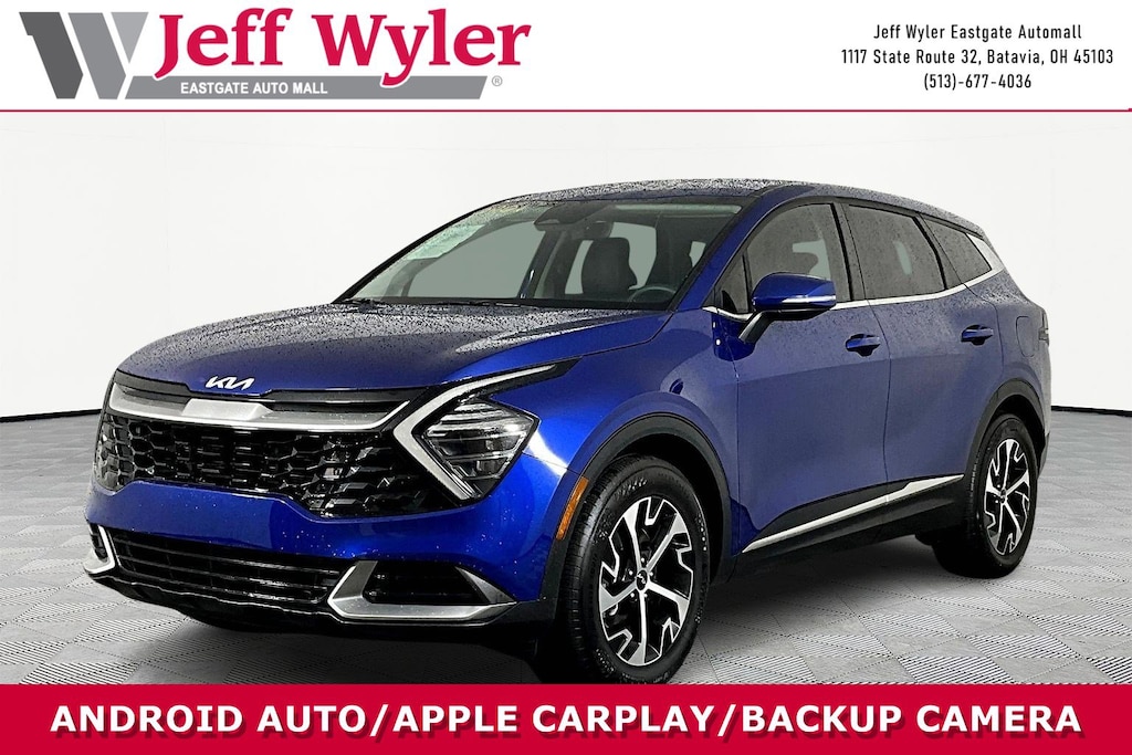 Jeff Wyler Eastgate Auto Mall is excited to offer this outstanding-looking 2025 Kia Sportage EX in Sapphire Blue. Well equipped with: 4-Wheel Disc Brakes, 6 Speakers, ABS brakes, Air Conditioning, Alloy wheels, AM/FM radio: SiriusXM, Apple CarPlay & Android Auto, Auto High-beam Headlights, Automatic temperature control, Brake assist, Bumpers: body-color, Carpeted Floor Mats, Compass, Delay-off headlights, Driver door bin, Driver vanity mirror, Dual front impact airbags, Dual front side impact airbags, Electronic Stability Control, Emergency communication system, Four wheel independent suspension, Front anti-roll bar, Front Bucket Seats, Front Center Armrest, Front dual zone A/C, Fully automatic headlights, Heated door mirrors, Heated Front Bucket Seats, Heated front seats, Illuminated entry, Leather Shift Knob, Leather steering wheel, Leatherette Seat Trim, Low tire pressure warning, Navigation System, Occupant sensing airbag, Outside temperature display, Overhead airbag, Overhead console, Panic alarm, Passenger door bin, Passenger vanity mirror, Power door mirrors, Power driver seat, Power steering, Power windows, Radio: AM/FM/HD Audio System, Rain sensing wipers, Rear anti-roll bar, Rear seat center armrest, Rear side impact airbag, Rear window defroster, Rear window wiper, Remote keyless entry, Security system, Speed control, Speed-sensing steering, Split folding rear seat, Spoiler, Steering wheel mounted audio controls, Tachometer, Telescoping steering wheel, Tilt steering wheel, Traction control, Trip computer, Turn signal indicator mirrors, Variably intermittent wipers, and Wheels: 18" x 7.5J Machined Alloy. CARFAX One-Owner. Clean CARFAX. Ask about available certifications. Used vehicles 10 years of age or newer with less than 100,000 miles are eligible for the Wyler Assurance Program, but eligible vehicles must pass our reconditioning process and multi-point inspection. Provided the vehicle passes inspection, vehicles will be eligible for the 6 month/6,000 mile limited warranty. The 6 month/6,000 mile limited warranty is NOT available on AS-IS vehicles, wholesale vehicles, lease buyback/pass-thru vehicles or un-inspected vehicles. Note that this program can also apply to vehicles where the remaining factory coverage is less than 6 months or 6,000 miles. Please check the Federal Trade Commission (FTC) Buyers guide on the vehicle for full details as to whether or not warranty coverage may apply. Contact Dealer for additional details. The Wyler Assurance 6 month/6,000 Mile limited warranty ends 6 months from the date of the Retail Purchase Agreement (BUYERS ORDER) or when the vehicle's odometer registers 6,000 additional miles to the mileage listed on the BUYERS ORDER, whichever comes first. Your Deductible - The warranty holder on your contract pays the first $100 of each covered repair.