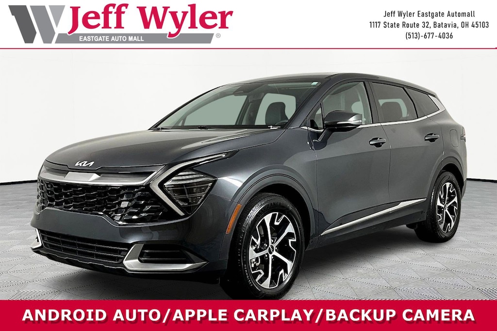 Jeff Wyler Eastgate Auto Mall is pumped up to offer this fantastic-looking 2025 Kia Sportage EX in Gravity Gray. Well equipped with: 4-Wheel Disc Brakes, 6 Speakers, ABS brakes, Air Conditioning, Alloy wheels, AM/FM radio: SiriusXM, Apple CarPlay & Android Auto, Auto High-beam Headlights, Automatic temperature control, Brake assist, Bumpers: body-color, Carpeted Floor Mats, Compass, Delay-off headlights, Driver door bin, Driver vanity mirror, Dual front impact airbags, Dual front side impact airbags, Electronic Stability Control, Emergency communication system, Four wheel independent suspension, Front anti-roll bar, Front Bucket Seats, Front Center Armrest, Front dual zone A/C, Fully automatic headlights, Heated door mirrors, Heated Front Bucket Seats, Heated front seats, Illuminated entry, Leather Shift Knob, Leather steering wheel, Leatherette Seat Trim, Low tire pressure warning, Navigation System, Occupant sensing airbag, Outside temperature display, Overhead airbag, Overhead console, Panic alarm, Passenger door bin, Passenger vanity mirror, Power door mirrors, Power driver seat, Power steering, Power windows, Radio: AM/FM/HD Audio System, Rain sensing wipers, Rear anti-roll bar, Rear seat center armrest, Rear side impact airbag, Rear window defroster, Rear window wiper, Remote keyless entry, Security system, Speed control, Speed-sensing steering, Split folding rear seat, Spoiler, Steering wheel mounted audio controls, Tachometer, Telescoping steering wheel, Tilt steering wheel, Traction control, Trip computer, Turn signal indicator mirrors, Variably intermittent wipers, and Wheels: 18" x 7.5J Machined Alloy. CARFAX One-Owner. Ask about available certifications. Used vehicles 10 years of age or newer with less than 100,000 miles are eligible for the Wyler Assurance Program, but eligible vehicles must pass our reconditioning process and multi-point inspection. Provided the vehicle passes inspection, vehicles will be eligible for the 6 month/6,000 mile limited warranty. The 6 month/6,000 mile limited warranty is NOT available on AS-IS vehicles, wholesale vehicles, lease buyback/pass-thru vehicles or un-inspected vehicles. Note that this program can also apply to vehicles where the remaining factory coverage is less than 6 months or 6,000 miles. Please check the Federal Trade Commission (FTC) Buyers guide on the vehicle for full details as to whether or not warranty coverage may apply. Contact Dealer for additional details. The Wyler Assurance 6 month/6,000 Mile limited warranty ends 6 months from the date of the Retail Purchase Agreement (BUYERS ORDER) or when the vehicle's odometer registers 6,000 additional miles to the mileage listed on the BUYERS ORDER, whichever comes first. Your Deductible - The warranty holder on your contract pays the first $100 of each covered repair.