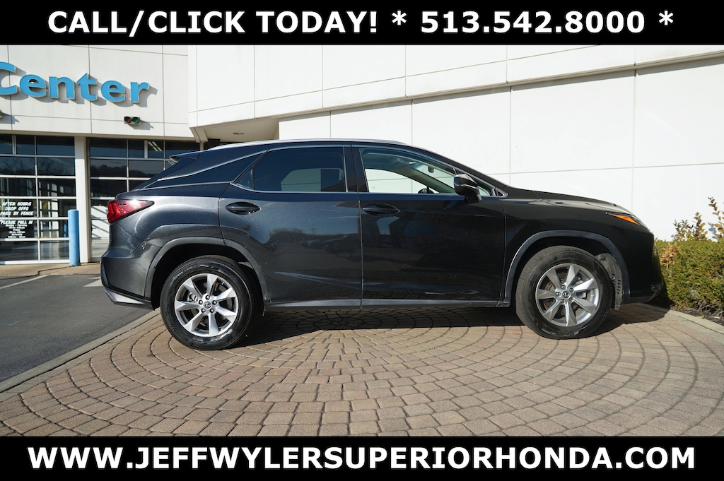 Jeff Wyler Superior Honda is proud to offer this wonderful 2019 Lexus RX 350 in Caviar. BLUETOOTH, LEATHER, and MOONROOF SUNROOF RX 350, 4D Sport Utility, 3.5L V6 DOHC VVT-i 24V, 8-Speed Automatic, AWD, Caviar, ABS brakes, Active Cruise Control, Alloy wheels, Compass, Electronic Stability Control, Front dual zone A/C, Heated door mirrors, Illuminated entry, Low tire pressure warning, Power Liftgate, Remote keyless entry, Traction control, 2.277 Axle Ratio, 4-Wheel Disc Brakes, 9 Speakers, Air Conditioning, AM/FM radio: SiriusXM, AM/FM/CD Radio, Anti-whiplash front head restraints, Auto High-beam Headlights, Auto-dimming Rear-View mirror, Automatic temperature control, Bumpers: body-color, CD player, Delay-off headlights, Distance pacing cruise control: All-Speed Dynamic Radar Cruise Control, Driver door bin, Driver vanity mirror, Dual front impact airbags, Dual front side impact airbags, Emergency communication system: Lexus Enform w/Safety Connect, Exterior Parking Cameras, Four wheel independent suspension, Front anti-roll bar, Front Bucket Seats, Front Center Armrest, Front fog lights, Front reading lights, Fully automatic headlights, Garage door transmitter: HomeLink, Genuine wood console insert, Genuine wood door panel insert, Knee airbag, Leather Shift Knob, Leather steering wheel, NuLuxe Seat Trim, Occupant sensing airbag, Outside temperature display, Overhead airbag, Overhead console, Panic alarm, Passenger door bin, Passenger vanity mirror, Power door mirrors, Power driver seat, Power passenger seat, Power steering, Power windows, Radio data system, Rain sensing wipers, Rear anti-roll bar, Rear reading lights, Rear seat center armrest, Rear side impact airbag, Rear window defroster, Rear window wiper, Security system, Speed control, Speed-sensing steering, Split folding rear seat, Spoiler, Steering wheel mounted audio controls, Tachometer, Telescoping steering wheel, Tilt steering wheel, Trip computer, Turn signal indicator mirrors, Variably intermittent wipers, and Wheels: 18" x 8" 7-Spoke Aluminum Our PRE-OWNED vehicles are put through a rigorous 167- POINT QUALITY ASSURANCE INSPECTION along with an average amount of over $1,400.00 SPENT to recondition each vehicle so we can be sure to deliver you the highest quality vehicle like you deserve! ***ONLINE PRICE DOES NOT INCLUDE WYLER FAMILY FIRST PACKAGE*** Stop by 4777 Spring Grove Ave. Road to see for yourself, or give us a call @ 283-209-1858 to schedule your test drive!