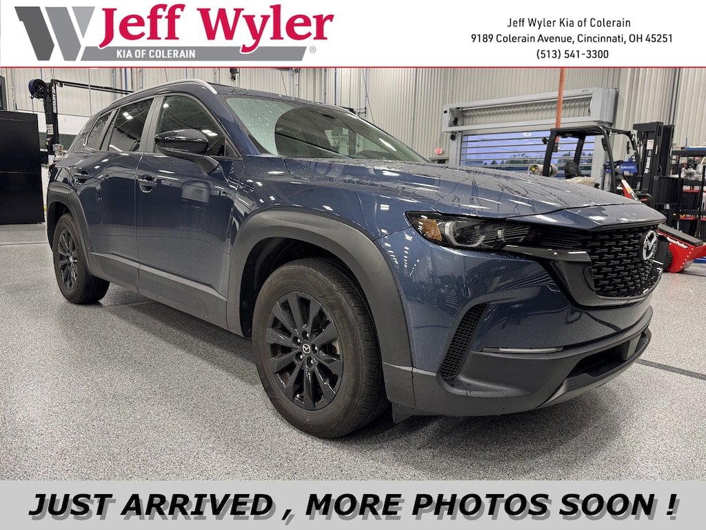 Jeff Wyler Kia of Colerain is pleased to offer this wonderful 2023 Mazda CX-50 2.5 S Preferred Plus Package in Ingot Blue Mica. Weather Package, 4-Wheel Disc Brakes, 4.367 Axle Ratio, 8 Speakers, ABS brakes, Air Conditioning, Alloy wheels, AM/FM radio, AppLink/Apple CarPlay and Android Auto, Auto High-beam Headlights, Automatic temperature control, Brake assist, Bumpers: body-color, Delay-off headlights, Driver door bin, Driver vanity mirror, Dual front impact airbags, Dual front side impact airbags, Electronic Stability Control, Emergency communication system: MAZDA CONNECT, Exterior Parking Camera Rear, Front anti-roll bar, Front Bucket Seats, Front Center Armrest w/Storage, Front dual zone A/C, Front reading lights, Front wheel independent suspension, Fully automatic headlights, Half Leatherette Seat Trim, Heated door mirrors, Heated Front Bucket Seats, Heated front seats, Illuminated entry, Knee airbag, Leather Shift Knob, Leather steering wheel, Low tire pressure warning, Occupant sensing airbag, Outside temperature display, Overhead airbag, Overhead console, Panic alarm, Passenger door bin, Passenger vanity mirror, Power door mirrors, Power driver seat, Power Liftgate, Power moonroof, Power steering, Power windows, Radio data system, Radio: AM/FM/HD Audio System, Rain sensing wipers, Rear seat center armrest, Rear window defroster, Rear window wiper, Remote keyless entry, Speed control, Speed-sensing steering, Split folding rear seat, Spoiler, Steering wheel mounted audio controls, Tachometer, Telescoping steering wheel, Tilt steering wheel, Traction control, Trip computer, Turn signal indicator mirrors, Variably intermittent wipers, and Wheels: 17" x 7J Aluminum Alloy Our PRE-OWNED vehicles are put through a rigorous 167- POINT QUALITY ASSURANCE INSPECTION along with an average amount of over $1,400.00 SPENT to recondition each vehicle so we can be sure to deliver you the highest quality vehicle like you deserve! ***ONLINE PRICE DOES NOT INCLUDE WYLER FAMILY FIRST PACKAGE***