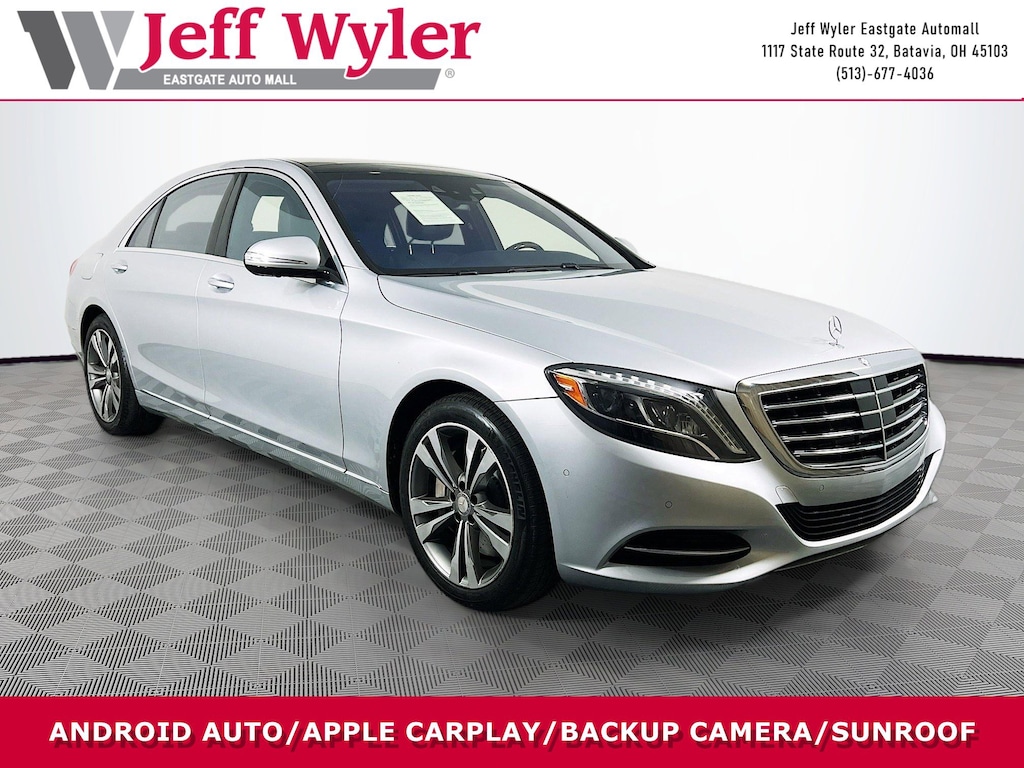 Jeff Wyler Eastgate Auto Mall is proud to offer this great 2016 Mercedes-Benz S-Class S 550 in Iridium Silver Metallic. Well equipped with: 13 Speakers, 4-Wheel Disc Brakes, ABS brakes, Adaptive suspension, Air Conditioning, Alloy wheels, AM/FM radio: SiriusXM, Anti-whiplash front head restraints, Auto High-beam Headlights, Auto tilt-away steering wheel, Auto-dimming door mirrors, Auto-dimming Rear-View mirror, Auto-leveling suspension, Automatic temperature control, Brake assist, Bumpers: body-color, Burl Walnut Wood Trim, CD player, Child-Seat-Sensing Airbag, COMAND® System w/AM/FM/GPS Navigation, Compass, Delay-off headlights, Door auto-latch, Driver door bin, Driver vanity mirror, Dual front impact airbags, Dual front side impact airbags, DVD-Audio, Electronic Stability Control, Emergency communication system: mbrace2, Exterior Parking Camera Rear, Four wheel independent suspension, Front anti-roll bar, Front Bucket Seats, Front Center Armrest, Front dual zone A/C, Front reading lights, Garage door transmitter: Homelink, Genuine wood console insert, Genuine wood door panel insert, Head restraints memory, Heated door mirrors, Heated front seats, Heated Power Front Seats w/Memory, HVAC memory, Illuminated entry, Knee airbag, Leather steering wheel, Leather Upholstery, Low tire pressure warning, Memory seat, Navigation System, Occupant sensing airbag, Outside temperature display, Overhead airbag, Overhead console, Panic alarm, Passenger door bin, Passenger vanity mirror, Power adjustable front head restraints, Power adjustable rear head restraints, Power door mirrors, Power driver seat, Power moonroof: Panorama, Power passenger seat, Power steering, Power windows, Premium audio system: COMAND®, Radio data system, Rain sensing wipers, Rear anti-roll bar, Rear fog lights, Rear reading lights, Rear seat center armrest, Rear side impact airbag, Rear Window Blind, Rear window defroster, Remote keyless entry, Security system, Speed control, Speed-sensing steering, Steering wheel memory, Steering wheel mounted audio controls, Tachometer, Telescoping steering wheel, Tilt steering wheel, Traction control, Trip computer, Turn signal indicator mirrors, Variably intermittent wipers, Ventilated front seats, Weather band radio, and Wheels: 18" Twin 5-Spoke. Reviews: * Exceptionally serene and absorbent ride quality; acceleration is effortless, well-mannered and very swift; seemingly endless safety and entertainment features; eerily controlled handling around turns with optional Magic Body Control. Source: EdmundsAsk about available certifications. Used vehicles 10 years of age or newer with less than 100,000 miles are eligible for the Wyler Assurance Program, but eligible vehicles must pass our reconditioning process and multi-point inspection. Provided the vehicle passes inspection, vehicles will be eligible for the 6 month/6,000 mile limited warranty. The 6 month/6,000 mile limited warranty is NOT available on AS-IS vehicles, wholesale vehicles, lease buyback/pass-thru vehicles or un-inspected vehicles. Note that this program can also apply to vehicles where the remaining factory coverage is less than 6 months or 6,000 miles. Please check the Federal Trade Commission (FTC) Buyers guide on the vehicle for full details as to whether or not warranty coverage may apply. Contact Dealer for additional details. The Wyler Assurance 6 month/6,000 Mile limited warranty ends 6 months from the date of the Retail Purchase Agreement (BUYERS ORDER) or when the vehicle's odometer registers 6,000 additional miles to the mileage listed on the BUYERS ORDER, whichever comes first. Your Deductible - The warranty holder on your contract pays the first $100 of each covered repair.