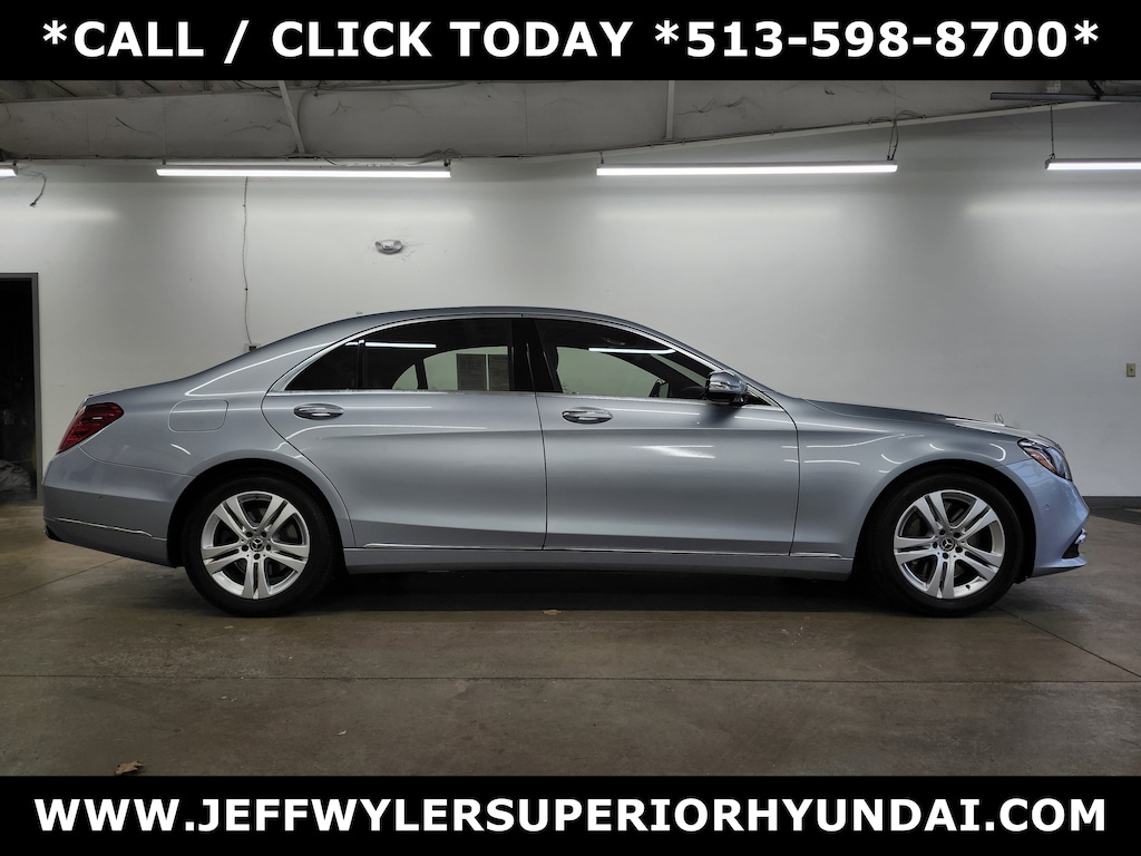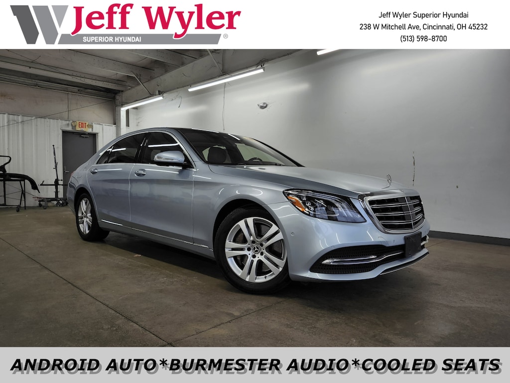 Jeff Wyler Superior Hyundai is delighted to offer this superb 2019 Mercedes-Benz S-Class S 560 in Diamond Silver Metallic. Well equipped with: 4MATIC®, Black Leather, 13 Speakers, 19" Multi-Spoke Wheels, 4-Wheel Disc Brakes, ABS brakes, Adaptive suspension, Air Conditioning, Alloy wheels, AM/FM radio: SiriusXM, Android Auto®, Apple CarPlay®, Apple CarPlay®/Android Auto®, Auto High-beam Headlights, Auto tilt-away steering wheel, Auto-dimming door mirrors, Auto-dimming Rear-View mirror, Auto-leveling suspension, Automatic temperature control, Brake assist, Bumpers: body-color, Burmester® Surround Sound System, Child-Seat-Sensing Airbag, Compass, Delay-off headlights, Door auto-latch, Driver door bin, Driver vanity mirror, Dual front impact airbags, Dual front side impact airbags, Electronic Stability Control, Emergency communication system: eCall Emergency System, Exterior Parking Camera Rear, Four wheel independent suspension, Front anti-roll bar, Front Bucket Seats, Front Center Armrest, Front dual zone A/C, Front reading lights, Garage door transmitter: Homelink, Genuine wood console insert, Genuine wood door panel insert, Head restraints memory, Heated door mirrors, Heated Front Seats, Heated front seats, HVAC memory, Illuminated entry, Knee airbag, Low tire pressure warning, Memory seat, Navigation system: COMAND®, Occupant sensing airbag, Outside temperature display, Overhead airbag, Overhead console, Panic alarm, Passenger door bin, Passenger vanity mirror, Perforated Nappa Leather Upholstery, Power adjustable front head restraints, Power adjustable rear head restraints, Power door mirrors, Power driver seat, Power Front Seats w/3-Position Memory, Power moonroof: Panorama, Power passenger seat, Power steering, Power windows, Pre-Wiring for CD Player, Premium audio system: COMAND®, Radio data system, Radio: COMAND® System w/Navigation, Rain sensing wipers, Rear anti-roll bar, Rear fog lights, Rear reading lights, Rear seat center armrest, Rear side impact airbag, Rear Window Blind, Rear window defroster, Remote keyless entry, Security system, SiriusXM Satellite Radio, Smartphone Integration, Speed control, Speed-sensing steering, Steering wheel memory, Steering wheel mounted audio controls, Tachometer, Telescoping steering wheel, Tilt steering wheel, Traction control, Trip computer, Turn signal indicator mirrors, Variably intermittent wipers, and Weather band radio. Clean CARFAX. This sales price excludes tax, title, and dealer fees. While every reasonable effort is made to ensure the accuracy of this information, we are not responsible for any errors or omissions contained on these pages. Used vehicles 10 years of age or newer with less than 100,000 miles are eligible for the Wyler Assurance Program, but eligible vehicles must pass our reconditioning process and multi-point inspection. Provided the vehicle passes inspection, vehicles will be eligible for the 6 month/6,000 mile limited warranty. The 6 month/6,000 mile limited warranty is NOT available on AS-IS vehicles, wholesale vehicles, lease buyback/pass-thru vehicles or un-inspected vehicles. Note that this program can also apply to vehicles where the remaining factory coverage is less than 6 months or 6,000 miles. Please check the Federal Trade Commission (FTC) Buyers guide on the vehicle for full details as to whether or not warranty coverage may apply. Contact Dealer for additional details. The Wyler Assurance 6 month/6,000 Mile limited warranty ends 6 months from the date of the Retail Purchase Agreement (BUYERS ORDER) or when the vehicle's odometer registers 6,000 additional miles to the mileage listed on the BUYERS ORDER, whichever comes first.Your Deductible - The warranty holder on your contract pays the first $100 of each covered repair.