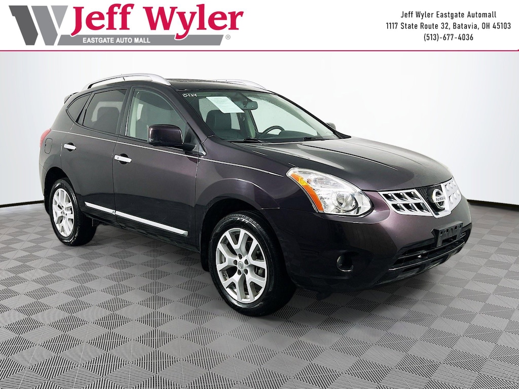 Jeff Wyler Eastgate Auto Mall is honored to offer this terrific-looking 2013 Nissan Rogue SL in Black Amethyst Metallic. Well equipped with: SL Package (Around View Monitor, Auto-Dimming Inside Mirror, Automatic Temperature Control (ATC), Front Fog Lights, Heated Outside Mirrors, High-Intensity Discharge Xenon Headlights, Leather Wrapped Steering Wheel, Navigation System w/5" Color Touch Screen Display, and Power Sliding Glass Moonroof), 18" Aluminum Alloy Wheels, 4-Wheel Disc Brakes, 5.798 Axle Ratio, 8 Speakers, ABS brakes, Air Conditioning, Alloy wheels, AM/FM radio: SiriusXM, Anti-whiplash front head restraints, Auto-dimming Rear-View mirror, Automatic temperature control, Bodyside moldings, Brake assist, Bumpers: body-color, CD player, Delay-off headlights, Driver door bin, Driver vanity mirror, Dual front impact airbags, Dual front side impact airbags, Electronic Stability Control, Exterior Parking Camera Rear, Floor Mats & Cargo Area Protector, Four wheel independent suspension, Front anti-roll bar, Front Bucket Seats, Front Center Armrest, Front fog lights, Front reading lights, Fully automatic headlights, Heated door mirrors, Heated Front Bucket Seats, Heated front seats, High intensity discharge headlights: Xenon, Illuminated entry, Leather Shift Knob, Leather-Appointed Seat Trim, Low tire pressure warning, Navigation System, Occupant sensing airbag, Outside temperature display, Overhead airbag, Overhead console, Panic alarm, Passenger door bin, Passenger vanity mirror, Power door mirrors, Power driver seat, Power moonroof, Power steering, Power windows, Radio data system, Radio: AM/FM/CD Bose Audio System, Rear anti-roll bar, Rear Bumper Protector, Rear window defroster, Rear window wiper, Remote keyless entry, Retractable Cargo Cover, Roof rack: rails only, Security system, Speed control, Speed-sensing steering, Splash Guards, Split folding rear seat, Spoiler, Steering wheel mounted audio controls, Tachometer, Tilt steering wheel, Traction control, Trip computer, and Variably intermittent wipers. Clean CARFAX. Awards: * 2013 KBB.com 10 Best Used Compact SUVs Under $10,000 Ask about available certifications. Used vehicles 10 years of age or newer with less than 100,000 miles are eligible for the Wyler Assurance Program, but eligible vehicles must pass our reconditioning process and multi-point inspection. Provided the vehicle passes inspection, vehicles will be eligible for the 6 month/6,000 mile limited warranty. The 6 month/6,000 mile limited warranty is NOT available on AS-IS vehicles, wholesale vehicles, lease buyback/pass-thru vehicles or un-inspected vehicles. Note that this program can also apply to vehicles where the remaining factory coverage is less than 6 months or 6,000 miles. Please check the Federal Trade Commission (FTC) Buyers guide on the vehicle for full details as to whether or not warranty coverage may apply. Contact Dealer for additional details. The Wyler Assurance 6 month/6,000 Mile limited warranty ends 6 months from the date of the Retail Purchase Agreement (BUYERS ORDER) or when the vehicle's odometer registers 6,000 additional miles to the mileage listed on the BUYERS ORDER, whichever comes first. Your Deductible - The warranty holder on your contract pays the first $100 of each covered repair.