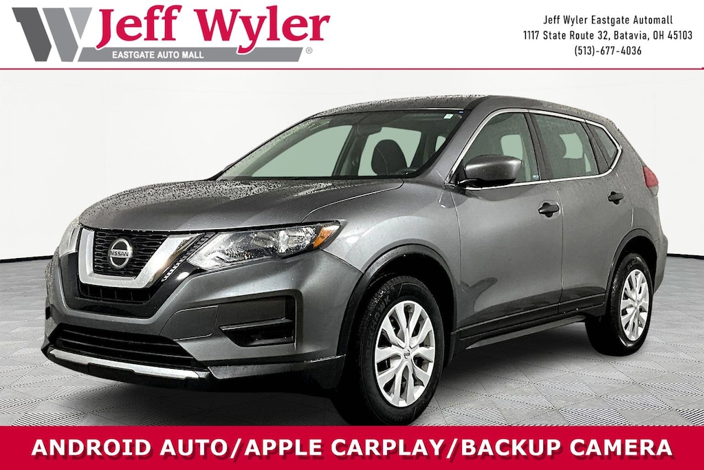 Jeff Wyler Eastgate Auto Mall is proud to offer this outstanding-looking 2018 Nissan Rogue S in Gun Metallic. Well equipped with: 4 Speakers, 4-Wheel Disc Brakes, 6.386 Axle Ratio, ABS brakes, Air Conditioning, AM/FM radio: SiriusXM, Anti-whiplash front head restraints, Apple CarPlay/Android Auto, Black Splash Guards (Set of 4), Blind Spot Warning, Brake assist, Bumpers: body-color, CD player, Chrome Rear Bumper Protector, Cloth Seat Trim, Driver door bin, Driver vanity mirror, Dual front impact airbags, Dual front side impact airbags, Electronic Stability Control, Floor Mats & 2-PC Cargo Area Protector, Four wheel independent suspension, Front anti-roll bar, Front Bucket Seats, Front Center Armrest w/Storage, Front reading lights, Illuminated entry, Low tire pressure warning, Occupant sensing airbag, Outside temperature display, Overhead airbag, Overhead console, Panic alarm, Passenger door bin, Passenger vanity mirror, Power door mirrors, Power steering, Power windows, Radio data system, Radio: AM/FM/CD/AUX, Rear anti-roll bar, Rear seat center armrest, Rear window defroster, Rear window wiper, Remote keyless entry, Security system, Speed control, Speed-sensing steering, Split folding rear seat, Spoiler, Steering wheel mounted audio controls, Tachometer, Telescoping steering wheel, Tilt steering wheel, Traction control, Trip computer, Variably intermittent wipers, and Wheels: 17" Steel w/Full Covers. Awards: * 2018 KBB.com 10 Best SUVs Under $25,000 Ask about available certifications. Used vehicles 10 years of age or newer with less than 100,000 miles are eligible for the Wyler Assurance Program, but eligible vehicles must pass our reconditioning process and multi-point inspection. Provided the vehicle passes inspection, vehicles will be eligible for the 6 month/6,000 mile limited warranty. The 6 month/6,000 mile limited warranty is NOT available on AS-IS vehicles, wholesale vehicles, lease buyback/pass-thru vehicles or un-inspected vehicles. Note that this program can also apply to vehicles where the remaining factory coverage is less than 6 months or 6,000 miles. Please check the Federal Trade Commission (FTC) Buyers guide on the vehicle for full details as to whether or not warranty coverage may apply. Contact Dealer for additional details. The Wyler Assurance 6 month/6,000 Mile limited warranty ends 6 months from the date of the Retail Purchase Agreement (BUYERS ORDER) or when the vehicle's odometer registers 6,000 additional miles to the mileage listed on the BUYERS ORDER, whichever comes first. Your Deductible - The warranty holder on your contract pays the first $100 of each covered repair.