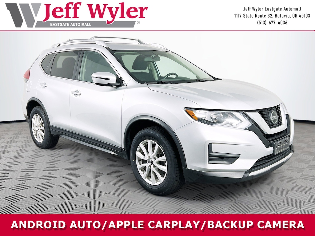 Jeff Wyler Eastgate Auto Mall is delighted to offer this stunning 2018 Nissan Rogue SV in Brilliant Silver. Well equipped with: 17" Aluminum Alloy Wheels, 4-Wheel Disc Brakes, 6 Speakers, 6.386 Axle Ratio, ABS brakes, Activation Disclaimer, Air Conditioning, Alloy wheels, AM/FM radio: SiriusXM, Anti-whiplash front head restraints, Apple CarPlay/Android Auto, Automatic temperature control, Blind Spot Warning, Brake assist, Bumpers: body-color, CD player, Cloth Seat Trim, Delay-off headlights, Driver door bin, Driver vanity mirror, Dual front impact airbags, Dual front side impact airbags, Electronic Stability Control, Floor Mats & 2-PC Cargo Area Protector, Four wheel independent suspension, Front anti-roll bar, Front Bucket Seats, Front Center Armrest w/Storage, Front dual zone A/C, Front reading lights, Fully automatic headlights, Heated door mirrors, Heated front seats, Illuminated entry, Leather Shift Knob, Low tire pressure warning, Occupant sensing airbag, Outside temperature display, Overhead airbag, Overhead console, Panic alarm, Passenger door bin, Passenger vanity mirror, Power door mirrors, Power driver seat, Power Liftgate, Power steering, Power windows, Quick Comfort Heated Front Bucket Seats, Radio data system, Radio: AM/FM/CD/AUX, Radio: AM/FM/CD/AUX NissanConnect w/Navigation, Rear anti-roll bar, Rear seat center armrest, Rear window defroster, Rear window wiper, Remote keyless entry, Roof rack: rails only, Security system, Speed control, Speed-sensing steering, Split folding rear seat, Spoiler, Steering wheel mounted audio controls, Tachometer, Telescoping steering wheel, Tilt steering wheel, Traction control, Trip computer, Turn signal indicator mirrors, and Variably intermittent wipers. Clean CARFAX. Awards: * 2018 KBB.com 10 Best SUVs Under $25,000 Ask about available certifications. Used vehicles 10 years of age or newer with less than 100,000 miles are eligible for the Wyler Assurance Program, but eligible vehicles must pass our reconditioning process and multi-point inspection. Provided the vehicle passes inspection, vehicles will be eligible for the 6 month/6,000 mile limited warranty. The 6 month/6,000 mile limited warranty is NOT available on AS-IS vehicles, wholesale vehicles, lease buyback/pass-thru vehicles or un-inspected vehicles. Note that this program can also apply to vehicles where the remaining factory coverage is less than 6 months or 6,000 miles. Please check the Federal Trade Commission (FTC) Buyers guide on the vehicle for full details as to whether or not warranty coverage may apply. Contact Dealer for additional details. The Wyler Assurance 6 month/6,000 Mile limited warranty ends 6 months from the date of the Retail Purchase Agreement (BUYERS ORDER) or when the vehicle's odometer registers 6,000 additional miles to the mileage listed on the BUYERS ORDER, whichever comes first. Your Deductible - The warranty holder on your contract pays the first $100 of each covered repair.