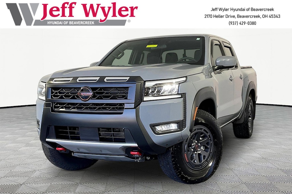 CARFAX One-Owner. Clean CARFAX. Jeff Wyler Hyundai of Beavercreek is very proud to offer this fantastic 2025 Nissan Frontier PRO-4X in Boulder Gray Pearl. Well equipped with: Tow Package, 17" Painted Alloy Wheels, 3.692 Axle Ratio, 4-Wheel Disc Brakes, 6 Speakers, ABS brakes, Air Conditioning, Alloy wheels, AM/FM radio: SiriusXM, Anti-whiplash front head restraints, Auto High-beam Headlights, Automatic temperature control, Blind Spot Warning, Brake assist, Bumpers: body-color, Delay-off headlights, Driver door bin, Driver vanity mirror, Drop-In Bed Liner & Bumper Step, Dual front impact airbags, Dual front side impact airbags, Electronic Stability Control, Electronic Tailgate Lock, Emergency communication system, Essentials Kit, Front anti-roll bar, Front Bucket Seats, Front Center Armrest, Front dual zone A/C, Front fog lights, Front reading lights, Front wheel independent suspension, Fully automatic headlights, Illuminated entry, Knee airbag, Leather Shift Knob, Leather steering wheel, Low tire pressure warning, Mud Flap Accessory, Occupant sensing airbag, Overhead airbag, Overhead console, Panic alarm, Passenger door bin, Passenger vanity mirror, Power door mirrors, Power driver seat, Power passenger seat, Power steering, Power windows, Premium Paint, PRO Embroidered Premium Cloth Seat Trim, PRO-4X Carpeted Floor Mats (DISC), Radio data system, Radio: SXM/AM/FM/AUX/USB Audio System, Rear anti-roll bar, Rear seat center armrest, Rear side impact airbag, Rear step bumper, Remote Engine Starter, Remote Engine Starter Accessory, Remote keyless entry, Security system, Speed control, Speed-sensing steering, Split folding rear seat, Steering wheel mounted audio controls, Tachometer, Telescoping steering wheel, Tilt steering wheel, Traction control, Trip computer, USB Charging Cable Kit, Variably intermittent wipers, Voltmeter, and Wireless Apple CarPlay/Wireless Android Auto.Come see the excitement at Jeff Wyler Hyundai of Beavercreek! Visit us online at www.jeffwylerhyundaiofbeavercreek.com Proudly Serving: Cincinnati, Dayton, Centeville, Ketttering, Moraine,Beavercreek, Xenia,Oakwood, Trotwood, Vandalia, Kettering, Wright Patterson, Riverside, Engelwood, Miamisburg, Huber Heights, Springboro, Brookville, Fairborn, West Carrollton, Yellow Springs, Bellbrook, Springfield Columbus, Hamilton, West Chester, Monroe, Fairfield.