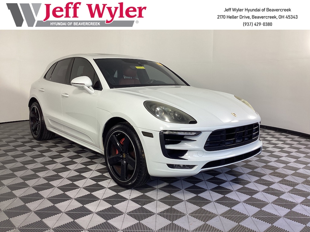 Clean CARFAX. Jeff Wyler Hyundai of Beavercreek is pumped up to offer this superb 2015 Porsche Macan Turbo in . Well equipped with: 18-Way Adaptive Sport Seats w/Memory Package, Partial Leather Seats w/Leather Package, 14 Speakers, 4-Wheel Disc Brakes, 4.13 Axle Ratio, ABS brakes, Adaptive suspension, Air Conditioning, Alloy wheels, AM/FM radio: SiriusXM, Automatic temperature control, BOSE Surround Sound System, Brake assist, Bumpers: body-color, CD player, Delay-off headlights, Driver door bin, Driver vanity mirror, Dual front impact airbags, Dual front side impact airbags, DVD-Audio, Electronic Stability Control, Four wheel independent suspension, Front anti-roll bar, Front Bucket Seats, Front Center Armrest, Front dual zone A/C, Front fog lights, Front reading lights, Fully automatic headlights, Garage door transmitter: HomeLink, Headlight cleaning, Heated door mirrors, Heated front seats, Heated steering wheel, High intensity discharge headlights: Bi-Xenon, Illuminated entry, Leather Shift Knob, Low tire pressure warning, Memory seat, Navigation System, Occupant sensing airbag, Outside temperature display, Overhead airbag, Overhead console, Panic alarm, Passenger door bin, Passenger vanity mirror, Power door mirrors, Power driver seat, Power Liftgate, Power passenger seat, Power steering, Power windows, Radio data system, Rain sensing wipers, Rear anti-roll bar, Rear reading lights, Rear seat center armrest, Rear side impact airbag, Rear window defroster, Rear window wiper, Remote keyless entry, Security system, Speed control, Speed-sensing steering, Split folding rear seat, Spoiler, Sport steering wheel, Steering wheel mounted audio controls, Tachometer, Telescoping steering wheel, Tilt steering wheel, Traction control, Trip computer, Variably intermittent wipers, and Wheels: 19" Macan Turbo.Awards: * JD Power Automotive Performance, Execution and Layout (APEAL) Study, Initial Quality Study (IQS) * 2015 KBB.com Our 10 Favorite New-for-2015 Cars * 2015 KBB.com 10 Most Fun SUVs * 2015 KBB.com Best Buy Awards Finalist * 2015 KBB.com Brand Image AwardsReviews: * If driving a Porsche 911 disguised as a front-engine compact SUV sounds like the message that you want to send to the world, the 2015 Porsche Macan delivers that message lithe, loud and clear. Source: KBB.com * Spirited performance even in base trim; athletic and engaging to drive; comfortable and quiet ride; highly customizable. Source: EdmundsCome see the excitement at Jeff Wyler Hyundai of Beavercreek! Visit us online at www.jeffwylerhyundaiofbeavercreek.com Proudly Serving: Cincinnati, Dayton, Centeville, Ketttering, Moraine,Beavercreek, Xenia,Oakwood, Trotwood, Vandalia, Kettering, Wright Patterson, Riverside, Engelwood, Miamisburg, Huber Heights, Springboro, Brookville, Fairborn, West Carrollton, Yellow Springs, Bellbrook, Springfield Columbus, Hamilton, West Chester, Monroe, Fairfield. PROUDLY SERVING: CINCINNATI, DAYTON,COLUMBUS, LOUISVILLE, LEXINGTON, INDIANAPOLIS,HAMILTON, FLORENCE, ALEXANDRIA, BEAVERCREEK, SPRINGDALE, WEST CHESTER, MONROE, FAIRFIELD, KENWOOD, NEWPORT AND ALL OF GREATER CINCINNATI OHIO, INDIANA, AND NORTHERN KENTUCKY.