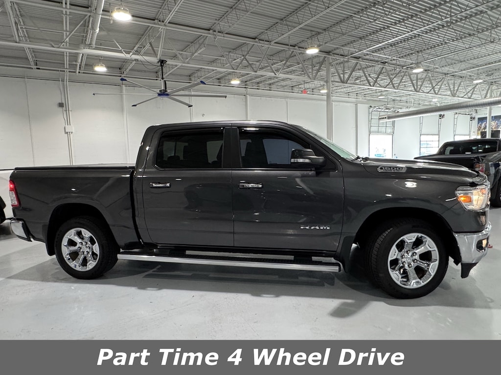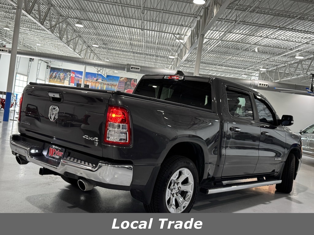 4WD/AWD, Bluetooth, Dual climate Control, Push Button Start, Backup Camera, 115V Auxiliary Power Outlet, 115V Auxiliary Rear Power Outlet, 2 USB Full Function/Charge Only Media Hub, 3 Rear Seat Head Restraints, 3.21 Rear Axle Ratio, 4 Way Front Headrests, 4-Wheel Disc Brakes, 400W Inverter, 48V Belt Starter Generator, 6 Speakers, 8.4" Touchscreen Display, ABS brakes, Air Conditioning, Air Conditioning ATC w/Dual Zone Control, Alloy wheels, AM/FM radio, Anti-Spin Differential Rear Axle, Auto-Dimming Rear-View Mirror, Big Horn IP Badge, Big Horn Level 2 Equipment Group, Brake assist, Bumpers: chrome, Class IV Receiver Hitch, Cloth Bench Seat, Cluster 7.0" TFT Color Display, Compass, Dampened Tailgate, Delay-off headlights, Driver door bin, Dual front impact airbags, Dual front side impact airbags, Electronic Stability Control, Foam Bottle Insert (Door Trim Panel), Front anti-roll bar, Front Center Armrest w/Storage, Front fog lights, Front reading lights, Front Seat Back Map Pockets, Front wheel independent suspension, Fully automatic headlights, Glove Box Lamp, GPS Antenna Input, Heated door mirrors, Heated Front Seats, Heated Steering Wheel, Illuminated entry, Integrated Center Stack Radio, Leather steering wheel, Low tire pressure warning, Occupant sensing airbag, Outside temperature display, Overhead airbag, Overhead console, Panic alarm, ParkSense Front/Rear Park Assist w/Stop, ParkView Rear Back-Up Camera, Passenger door bin, Passenger vanity mirror, Power 4-Way Driver Lumbar Adjust, Power 8-Way Driver Seat, Power Adjustable Pedals, Power door mirrors, Power Heated Fold Away Mirrors, Power steering, Power windows, Quick Order Package 25Z Big Horn/Lone Star, Radio data system, Radio: Uconnect 3 w/5" Display, Radio: Uconnect 4 w/8.4" Display, Rear 60/40 Folding Seat, Rear anti-roll bar, Rear Dome w/On/Off Switch Lamp, Rear Power Sliding Window, Rear seat center armrest, Rear step bumper, Rear Wheelhouse Liners, Rear Window Defroster, Remote keyless entry, Remote Start System, Security Alarm, Single Disc Remote CD Player, SiriusXM Satellite Radio, Speed control, Split folding rear seat, Steering Wheel Mounted Audio Controls, Sun Visors w/Illuminated Vanity Mirrors, Tachometer, Telescoping steering wheel, Tilt steering wheel, Traction control, Trip computer, Universal Garage Door Opener, Variably intermittent wipers, Voltmeter, Wheel to Wheel Side Steps, Wheels: 18" x 8", Wheels: 20" x 9" Aluminum Chrome Clad. CARFAX One-Owner. 4WD 8-Speed Automatic HEMI 5.7L V8 Multi Displacement VVT15/21 City/Highway MPGAwards: * Motor Trend Automobiles of the year * NACTOY 2019 North American Truck of the Year * 2019 KBB.com 10 Best Road Trip Cars * 2019 KBB.com Best Auto Tech Awards * 2019 KBB.com 10 Favorite New-for-2019 CarsAsk about available certifications. WE'RE CHANGING THE GAME IN ORDER TO KEEP YOU AND YOUR FAMILY SAFE. -BUY YOUR CAR ONLINE WITH WYLER DIRECT -WE'LL DELIVER TO YOUR DRIVEWAY FREE OF CHARGE (within 100 miles from our dealership)