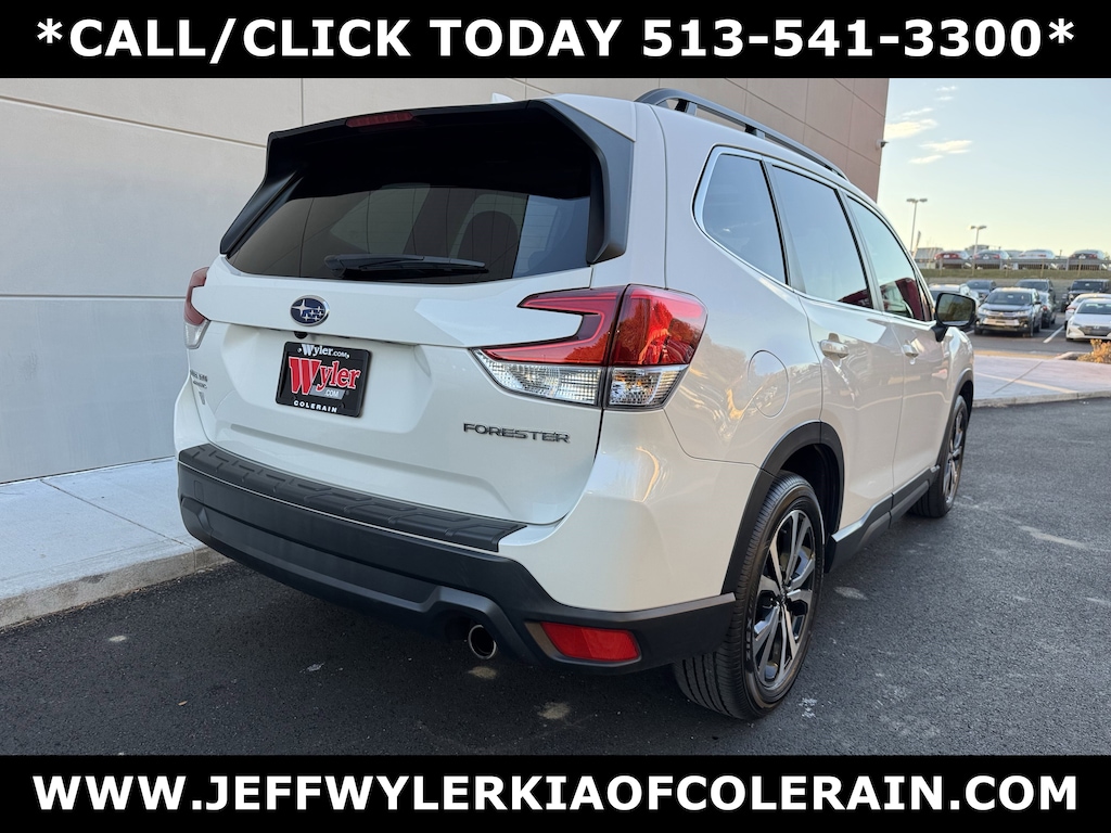 Jeff Wyler Kia of Colerain is proud to offer this good-looking 2023 Subaru Forester Limited in Crystal White Pearl. Standard Model, 3.70 Axle Ratio, 4-Wheel Disc Brakes, 6 Speakers, ABS brakes, Air Conditioning, Alloy wheels, AM/FM radio: SiriusXM, Anti-whiplash front head restraints, Auto High-beam Headlights, Automatic temperature control, Brake assist, Bumpers: body-color, CD player, Driver door bin, Driver vanity mirror, Dual front impact airbags, Dual front side impact airbags, Electronic Stability Control, Emergency communication system: STARLINK Safety and Security (Subscription Required), Exterior Parking Camera Rear, Four wheel independent suspension, Front anti-roll bar, Front Bucket Seats, Front Center Armrest, Front dual zone A/C, Front fog lights, Front reading lights, Fully automatic headlights, Heated door mirrors, Heated Front Bucket Seats, Heated front seats, Illuminated entry, Knee airbag, Leather Shift Knob, Low tire pressure warning, Occupant sensing airbag, Outside temperature display, Overhead airbag, Overhead console, Panic alarm, Passenger door bin, Passenger vanity mirror, Perforated Leather-Trimmed Upholstery, Power door mirrors, Power driver seat, Power Liftgate, Power moonroof: Panoramic, Power steering, Power windows, Radio data system, Radio: Subaru Starlink 8.0" Multimedia Plus System, Rear anti-roll bar, Rear seat center armrest, Rear window defroster, Rear window wiper, Remote keyless entry, Roof rack: rails only, Security system, Speed control, Speed-sensing steering, Split folding rear seat, Spoiler, STARLINK/Apple CarPlay/Android Auto, Steering wheel mounted audio controls, Tachometer, Telescoping steering wheel, Tilt steering wheel, Traction control, Trip computer, Turn signal indicator mirrors, Variably intermittent wipers, and Wheels: 18" x 7.0 J Black Machine Finish Alloy Our PRE-OWNED vehicles are put through a rigorous 167- POINT QUALITY ASSURANCE INSPECTION along with an average amount of over $1,400.00 SPENT to recondition each vehicle so we can be sure to deliver you the highest quality vehicle like you deserve! ***ONLINE PRICE DOES NOT INCLUDE WYLER FAMILY FIRST PACKAGE***