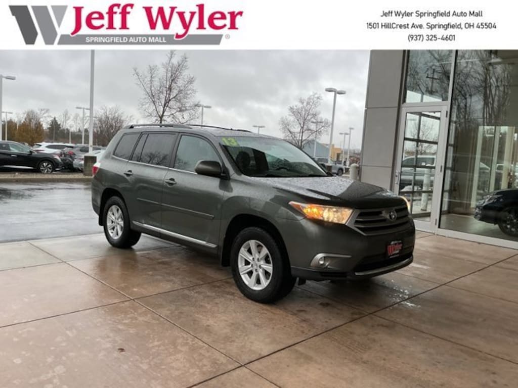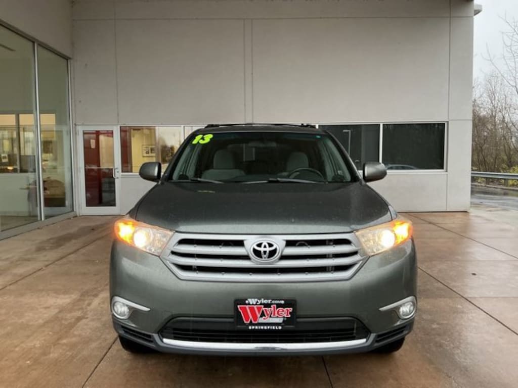 Jeff Wyler Springfield Auto Mall is excited to offer this attractive-looking 2013 Toyota Highlander Base Plus V6 in Green. Well equipped with: 2.928 Axle Ratio, 3rd row seats: split-bench, 4-Wheel Disc Brakes, ABS brakes, Air Conditioning, Alloy wheels, Anti-whiplash front head restraints, Brake assist, Bumpers: body-color, CD player, Delay-off headlights, Driver door bin, Driver vanity mirror, Dual front impact airbags, Dual front side impact airbags, Electronic Stability Control, Four wheel independent suspension, Front anti-roll bar, Front Bucket Seats, Front Center Armrest, Front reading lights, Fully automatic headlights, Illuminated entry, Knee airbag, Low tire pressure warning, Occupant sensing airbag, Overhead airbag, Overhead console, Panic alarm, Passenger door bin, Passenger vanity mirror, Power door mirrors, Power steering, Power windows, Rear air conditioning, Rear anti-roll bar, Rear window defroster, Rear window wiper, Remote keyless entry, Speed control, Speed-sensing steering, Split folding rear seat, Spoiler, Steering wheel mounted audio controls, Tachometer, Telescoping steering wheel, Tilt steering wheel, Traction control, and Variably intermittent wipers. Awards:* 2013 IIHS Top Safety Pick * 2013 KBB.com Best Resale Value Awards * 2013 KBB.com Brand Image Awards Reviews:* Powerful yet fuel-efficient V6; user-friendly cabin with innovative second-row seat design; easy to maneuver. Source: Edmunds* When you combine the 2013 Toyota Highlanderâs wide model range, exceptional resale value and strong owner-satisfaction figures, it may look hard to justify buying anything else. Source: KBB.comAsk about available certifications. Used vehicles 10 years of age or newer with less than 100,000 miles are eligible for the Wyler Assurance Program, but eligible vehicles must pass our reconditioning process and multi-point inspection. Provided the vehicle passes inspection, vehicles will be eligible for the 6 month/6,000 mile limited warranty. The 6 month/6,000 mile limited warranty is NOT available on AS-IS vehicles, wholesale vehicles, lease buyback/pass-thru vehicles or un-inspected vehicles. Note that this program can also apply to vehicles where the remaining factory coverage is less than 6 months or 6,000 miles. Please check the Federal Trade Commission (FTC) Buyers guide on the vehicle for full details as to whether or not warranty coverage may apply. Contact Dealer for additional details. The Wyler Assurance 6 month/6,000 Mile limited warranty ends 6 months from the date of the Retail Purchase Agreement (BUYERS ORDER) or when the vehicle's odometer registers 6,000 additional miles to the mileage listed on the BUYERS ORDER, whichever comes first. Your Deductible - The warranty holder on your contract pays the first $100 of each covered repair.