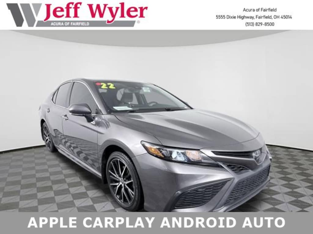 Jeff Wyler Acura of Fairfield is honored to offer this wonderful 2022 Toyota Camry SE in Charcoal. Black Cloth, 4-Wheel Disc Brakes, 6 Speakers, ABS brakes, Air Conditioning, Alloy wheels, AM/FM radio: SiriusXM, Apple CarPlay/Android Auto, Auto High-beam Headlights, Automatic temperature control, Brake assist, Bumpers: body-color, Delay-off headlights, Driver door bin, Driver vanity mirror, Dual front impact airbags, Dual front side impact airbags, Electronic Stability Control, Emergency communication system: Safety Connect with 1-year trial, Exterior Parking Camera Rear, Fabric Seat Trim w/Sport SofTex, Four wheel independent suspension, Front anti-roll bar, Front Bucket Seats, Front Center Armrest, Front dual zone A/C, Front reading lights, Fully automatic headlights, Heated door mirrors, Illuminated entry, Knee airbag, Low tire pressure warning, Occupant sensing airbag, Outside temperature display, Overhead airbag, Overhead console, Panic alarm, Passenger door bin, Passenger vanity mirror, Power door mirrors, Power driver seat, Power steering, Power windows, Radio data system, Radio: AM/FM Audio System, Rear anti-roll bar, Rear seat center armrest, Rear side impact airbag, Rear window defroster, Remote keyless entry, Security system, Speed control, Speed-sensing steering, Split folding rear seat, Spoiler, Steering wheel mounted audio controls, Tachometer, Telescoping steering wheel, Tilt steering wheel, Traction control, Trip computer, Turn signal indicator mirrors, Variably intermittent wipers, and Wheels: 8.0J x 18" Black Machined-Finish Alloy ***ONLINE PRICE DOES NOT INCLUDE WYLER FAMILY FIRST PACKAGE*** Clean CARFAX. Odometer is 5220 miles below market average!Proudly Serving: Cincinnati, Dayton, Columbus, Louisville, Lexington, Indianapolis, Hamilton, Florence, Alexandria, Beavercreek, Springdale, West Chester, Monroe, Fairfield, Kenwood, Newport and all of greater Cincinnati Ohio, Indiana, and Northern Kentucky.