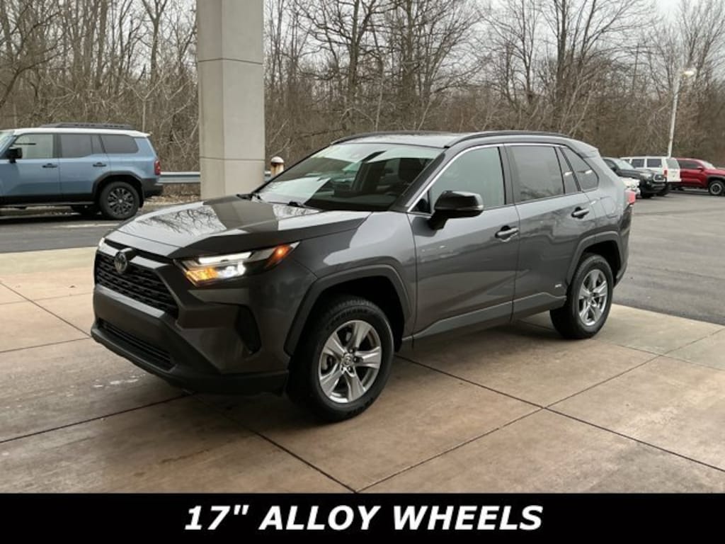 Jeff Wyler Springfield Auto Mall is pleased to offer this great 2022 Toyota RAV4 Hybrid XLE in Gray. Well equipped with: 4-Wheel Disc Brakes, 6 Speakers, ABS brakes, Air Conditioning, Alloy wheels, AM/FM radio: SiriusXM, AM/FM Stereo, Apple CarPlay/Android Auto, Auto High-beam Headlights, Automatic temperature control, Axle Ratio: TBD, Brake assist, Bumpers: body-color, Delay-off headlights, Driver door bin, Driver vanity mirror, Dual front impact airbags, Dual front side impact airbags, Electronic Stability Control, Emergency communication system: Safety Connect with 1-year trial, Exterior Parking Camera Rear, Fabric Seat Trim (FA), Four wheel independent suspension, Front anti-roll bar, Front Bucket Seats, Front Center Armrest, Front dual zone A/C, Front fog lights, Front reading lights, Front Sport Seats, Fully automatic headlights, Heated door mirrors, Illuminated entry, Knee airbag, Lane Departure Warning System, Low tire pressure warning, Occupant sensing airbag, Outside temperature display, Overhead airbag, Overhead console, Panic alarm, Passenger door bin, Passenger vanity mirror, Power door mirrors, Power driver seat, Power steering, Power windows, Radio data system, Rear anti-roll bar, Rear seat center armrest, Rear window defroster, Rear window wiper, Remote keyless entry, Roof rack: rails only, Speed control, Speed-sensing steering, Split folding rear seat, Spoiler, Steering wheel mounted audio controls, Telescoping steering wheel, Tilt steering wheel, Traction control, Trip computer, Turn signal indicator mirrors, Variably intermittent wipers, and Wheels: 17 x 7.0J Silver Aluminum Alloy. Ask about available certifications. Used vehicles 10 years of age or newer with less than 100,000 miles are eligible for the Wyler Assurance Program, but eligible vehicles must pass our reconditioning process and multi-point inspection. Provided the vehicle passes inspection, vehicles will be eligible for the 6 month/6,000 mile limited warranty. The 6 month/6,000 mile limited warranty is NOT available on AS-IS vehicles, wholesale vehicles, lease buyback/pass-thru vehicles or un-inspected vehicles. Note that this program can also apply to vehicles where the remaining factory coverage is less than 6 months or 6,000 miles. Please check the Federal Trade Commission (FTC) Buyers guide on the vehicle for full details as to whether or not warranty coverage may apply. Contact Dealer for additional details. The Wyler Assurance 6 month/6,000 Mile limited warranty ends 6 months from the date of the Retail Purchase Agreement (BUYERS ORDER) or when the vehicle's odometer registers 6,000 additional miles to the mileage listed on the BUYERS ORDER, whichever comes first. Your Deductible - The warranty holder on your contract pays the first $100 of each covered repair.