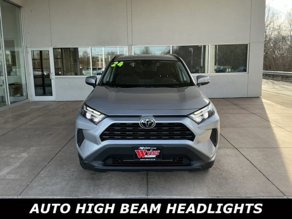 Jeff Wyler Springfield Auto Mall is proud to offer this wonderful 2024 Toyota RAV4 XLE in Gray. Well equipped with: 4-Wheel Disc Brakes, 6 Speakers, ABS brakes, Air Conditioning, Alloy wheels, AM/FM radio: SiriusXM, Auto High-beam Headlights, Automatic temperature control, Axle Ratio: 3.177, Brake assist, Bumpers: body-color, Delay-off headlights, Driver door bin, Driver vanity mirror, Dual front impact airbags, Dual front side impact airbags, Electronic Stability Control, Emergency communication system: Safety Connect (10-year trial), Exterior Parking Camera Rear, Fabric Seat Trim, Four wheel independent suspension, Front anti-roll bar, Front Bucket Seats, Front Center Armrest, Front dual zone A/C, Front reading lights, Fully automatic headlights, Heated door mirrors, Illuminated entry, Knee airbag, Low tire pressure warning, Occupant sensing airbag, Outside temperature display, Overhead airbag, Overhead console, Panic alarm, Passenger door bin, Passenger vanity mirror, Power door mirrors, Power driver seat, Power steering, Power windows, Radio data system, Radio: AM/FM/XM Audio System, Rear anti-roll bar, Rear seat center armrest, Rear window defroster, Rear window wiper, Remote keyless entry, Speed control, Speed-sensing steering, Split folding rear seat, Spoiler, Steering wheel mounted audio controls, Tachometer, Telescoping steering wheel, Tilt steering wheel, Traction control, Trip computer, Turn signal indicator mirrors, Variably intermittent wipers, and Wheels: 17 5-Spoke Silver Alloy. Ask about available certifications. Used vehicles 10 years of age or newer with less than 100,000 miles are eligible for the Wyler Assurance Program, but eligible vehicles must pass our reconditioning process and multi-point inspection. Provided the vehicle passes inspection, vehicles will be eligible for the 6 month/6,000 mile limited warranty. The 6 month/6,000 mile limited warranty is NOT available on AS-IS vehicles, wholesale vehicles, lease buyback/pass-thru vehicles or un-inspected vehicles. Note that this program can also apply to vehicles where the remaining factory coverage is less than 6 months or 6,000 miles. Please check the Federal Trade Commission (FTC) Buyers guide on the vehicle for full details as to whether or not warranty coverage may apply. Contact Dealer for additional details. The Wyler Assurance 6 month/6,000 Mile limited warranty ends 6 months from the date of the Retail Purchase Agreement (BUYERS ORDER) or when the vehicle's odometer registers 6,000 additional miles to the mileage listed on the BUYERS ORDER, whichever comes first. Your Deductible - The warranty holder on your contract pays the first $100 of each covered repair.