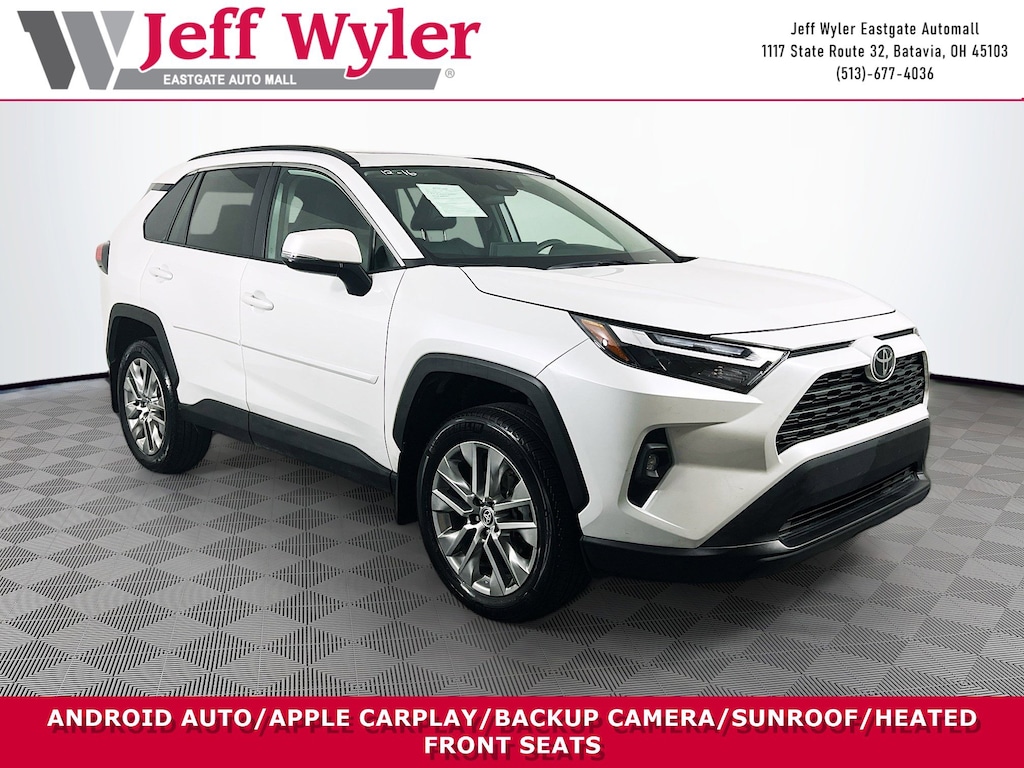 Jeff Wyler Eastgate Auto Mall is delighted to offer this good-looking 2025 Toyota RAV4 XLE Premium in Ice Cap. Well equipped with: 3 Spoke Leather Steering Wheel, 4-Wheel Disc Brakes, 6 Speakers, ABS brakes, Air Conditioning, Alloy wheels, AM/FM radio: SiriusXM, Auto High-beam Headlights, Automatic temperature control, Brake assist, Bumpers: body-color, Delay-off headlights, Driver door bin, Driver vanity mirror, Dual front impact airbags, Dual front side impact airbags, Electronic Stability Control, Emergency communication system: Safety Connect (10-year trial), Exterior Parking Camera Rear, Four wheel independent suspension, Front anti-roll bar, Front Bucket Seats, Front Center Armrest, Front dual zone A/C, Front reading lights, Fully automatic headlights, Heated door mirrors, Illuminated entry, Knee airbag, Leather Shift Knob, Leather steering wheel, Low tire pressure warning, Occupant sensing airbag, Outside temperature display, Overhead airbag, Overhead console, Panic alarm, Passenger door bin, Passenger vanity mirror, Power door mirrors, Power driver seat, Power Liftgate, Power moonroof, Power steering, Power windows, Radio data system, Radio: AM/FM/XM Audio System, Rear anti-roll bar, Rear seat center armrest, Rear window defroster, Rear window wiper, Remote keyless entry, SofTex Seat Trim, Speed control, Speed-sensing steering, Split folding rear seat, Spoiler, Steering wheel mounted audio controls, Tachometer, Telescoping steering wheel, Tilt steering wheel, Traction control, Trip computer, Turn signal indicator mirrors, Variably intermittent wipers, and Wheels: 19" 5-Spoke Silver Alloy. CARFAX One-Owner. Clean CARFAX. Ask about available certifications. Used vehicles 10 years of age or newer with less than 100,000 miles are eligible for the Wyler Assurance Program, but eligible vehicles must pass our reconditioning process and multi-point inspection. Provided the vehicle passes inspection, vehicles will be eligible for the 6 month/6,000 mile limited warranty. The 6 month/6,000 mile limited warranty is NOT available on AS-IS vehicles, wholesale vehicles, lease buyback/pass-thru vehicles or un-inspected vehicles. Note that this program can also apply to vehicles where the remaining factory coverage is less than 6 months or 6,000 miles. Please check the Federal Trade Commission (FTC) Buyers guide on the vehicle for full details as to whether or not warranty coverage may apply. Contact Dealer for additional details. The Wyler Assurance 6 month/6,000 Mile limited warranty ends 6 months from the date of the Retail Purchase Agreement (BUYERS ORDER) or when the vehicle's odometer registers 6,000 additional miles to the mileage listed on the BUYERS ORDER, whichever comes first. Your Deductible - The warranty holder on your contract pays the first $100 of each covered repair.