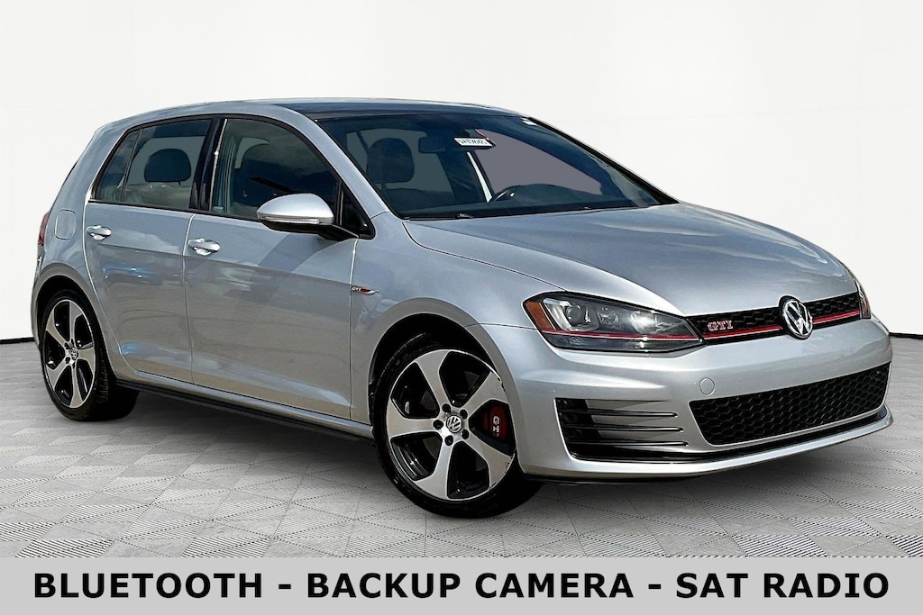 Jeff Wyler Acura of Dayton is honored to offer this great 2017 Volkswagen Golf GTI SE in Reflex Silver Metallic. ABS brakes, Alloy wheels, Compass, Electronic Stability Control, Heated door mirrors, Heated front seats, Heated Top Sport Front Seats, Illuminated entry, Low tire pressure warning, Power moonroof, Remote keyless entry, Traction control, 4-Wheel Disc Brakes, 9 Speakers, Air Conditioning, AM/FM radio: SiriusXM, Anti-whiplash front head restraints, Bi-Xenon Headlights, Brake assist, Bumpers: body-color, CD player, Driver door bin, Driver vanity mirror, Dual front impact airbags, Dual front side impact airbags, Emergency communication system: VW Car-Net, Exterior Parking Camera Rear, Four wheel independent suspension, Front anti-roll bar, Front Bucket Seats, Front Center Armrest, Front fog lights, Front reading lights, Fully automatic headlights, High intensity discharge headlights: Bi-Xenon, Leather Seating Surfaces, Leather Shift Knob, Leather steering wheel, LED Daytime Running Lights (DRL), Occupant sensing airbag, Outside temperature display, Overhead airbag, Overhead console, Panic alarm, Passenger door bin, Passenger vanity mirror, Power door mirrors, Power driver seat, Power passenger seat, Power steering, Power windows, Radio data system, Radio: Composition Media w/6.5" Touchscreen, Rain sensing wipers, Rear anti-roll bar, Rear reading lights, Rear seat center armrest, Rear window defroster, Rear window wiper, Security system, Speed control, Speed-sensing steering, Speed-Sensitive Wipers, Split folding rear seat, Spoiler, Sport steering wheel, Steering wheel mounted audio controls, Tachometer, Telescoping steering wheel, Tilt steering wheel, Trip computer, Turn signal indicator mirrors, Variably intermittent wipers, and Wheels: 18" Austin Alloy Our PRE-OWNED vehicles are put through a rigorous 167- POINT QUALITY ASSURANCE INSPECTION along with an average amount of over $1,400.00 SPENT to recondition each vehicle so we can be sure to deliver you the highest quality vehicle like you deserve! ***ONLINE PRICE DOES NOT INCLUDE WYLER FAMILY FIRST PACKAGE***